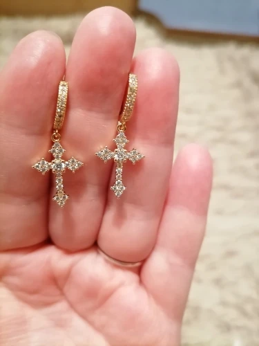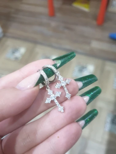 Серьги конечно красивые , но почему то пришли мне разобраны , пришлось самой вставлять крестик в серьгу , гнуть колечко , которое оказалось не запаянным . От этого боюсь что испортится качество металла , и может сломаться . Ну а так норм , носить буду , не знаю долго или нет. Доставка три недели
