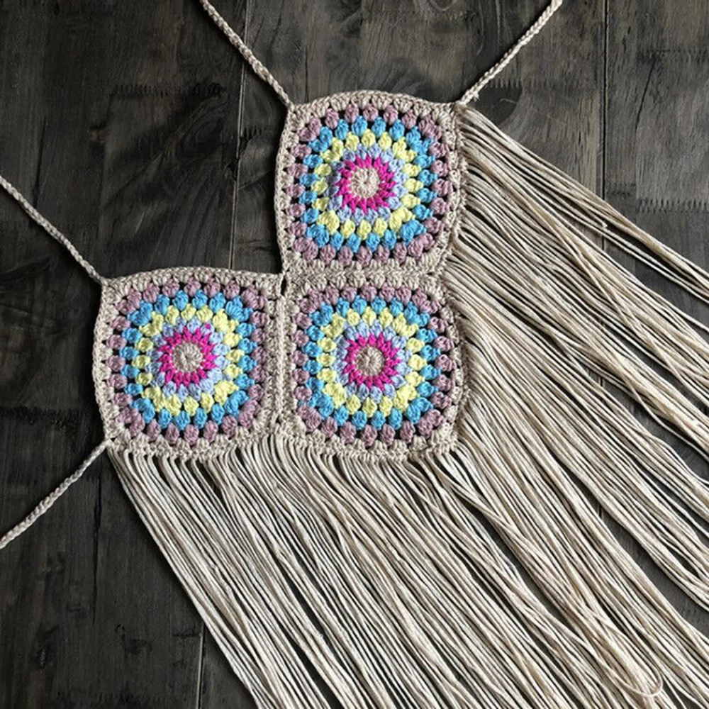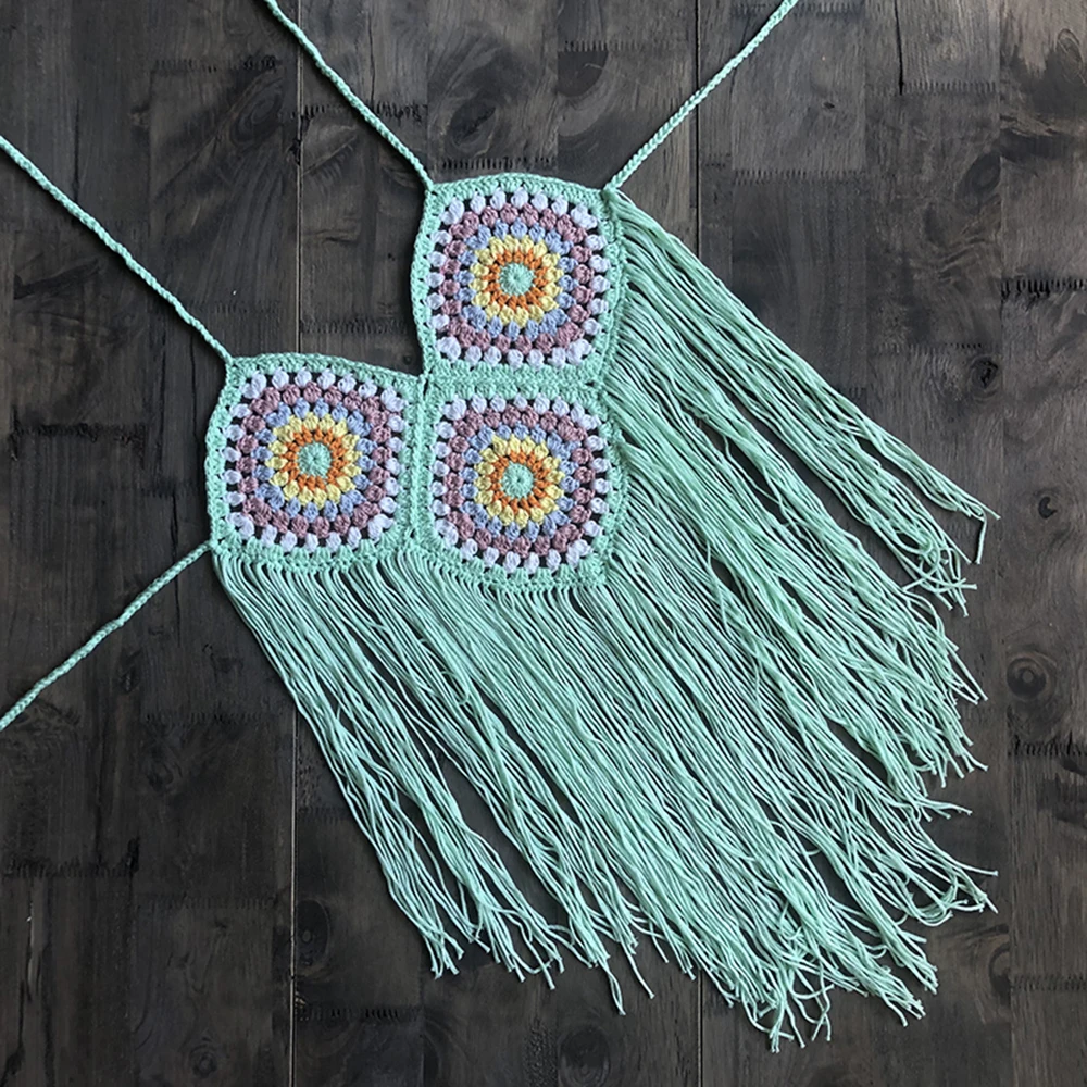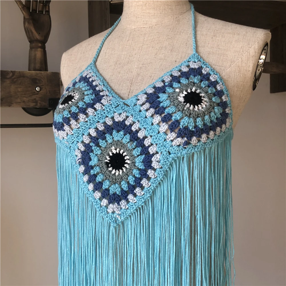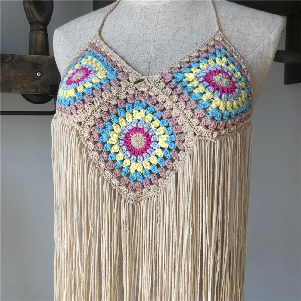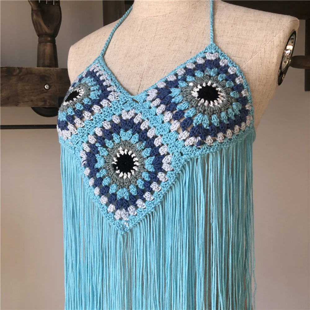 Женский вязаный крючком топ-бикини с кисточками, облегающий купальный топ, богемный купальник, пикантный вязаный крючком бикини ручной работы, хлопковый топ
