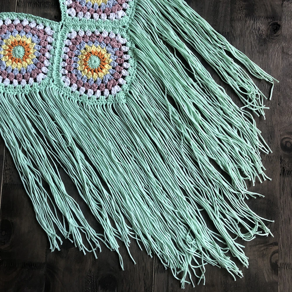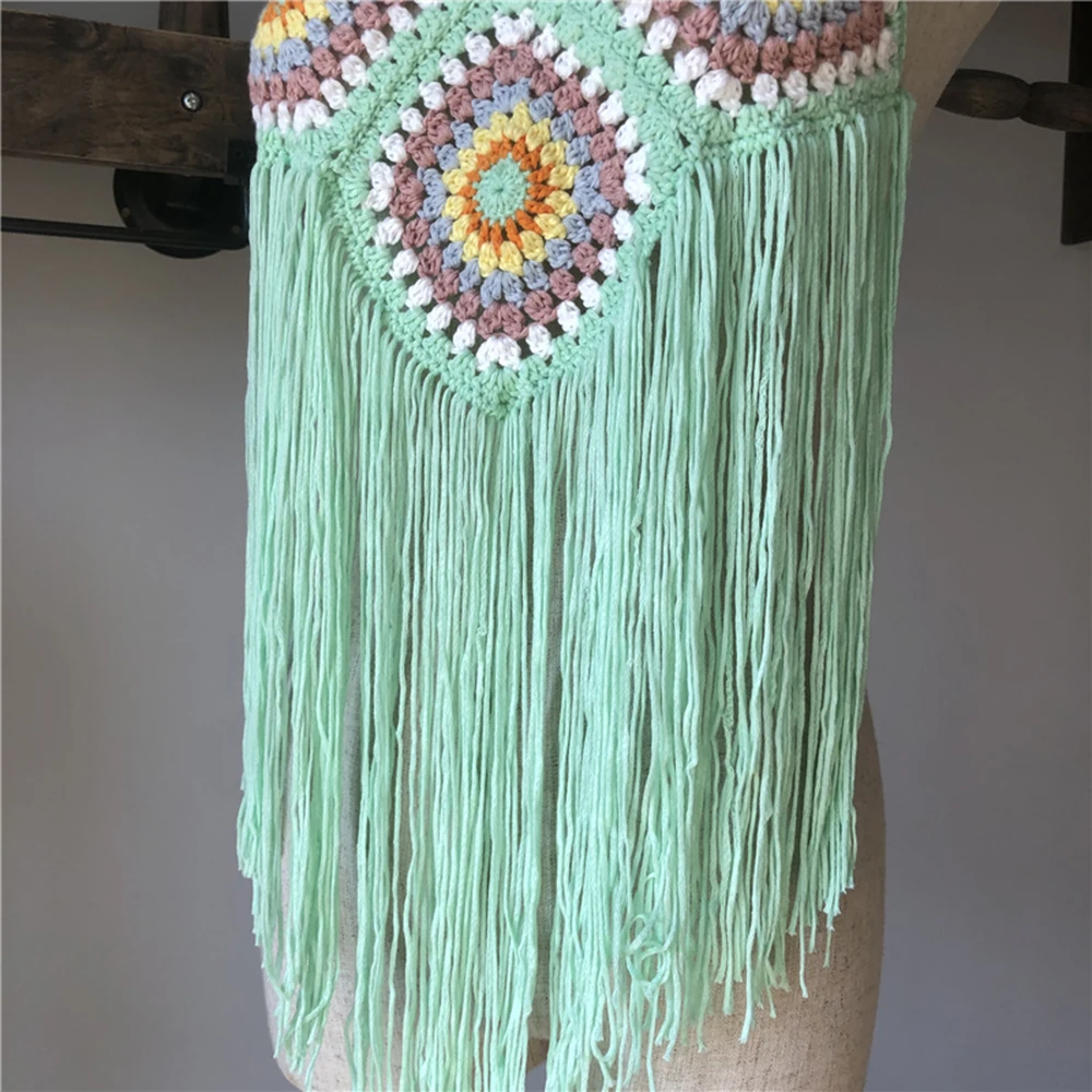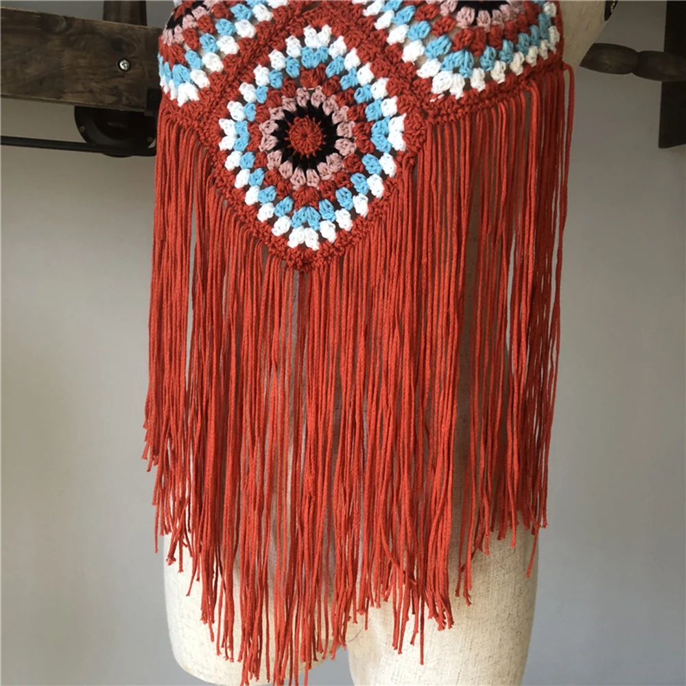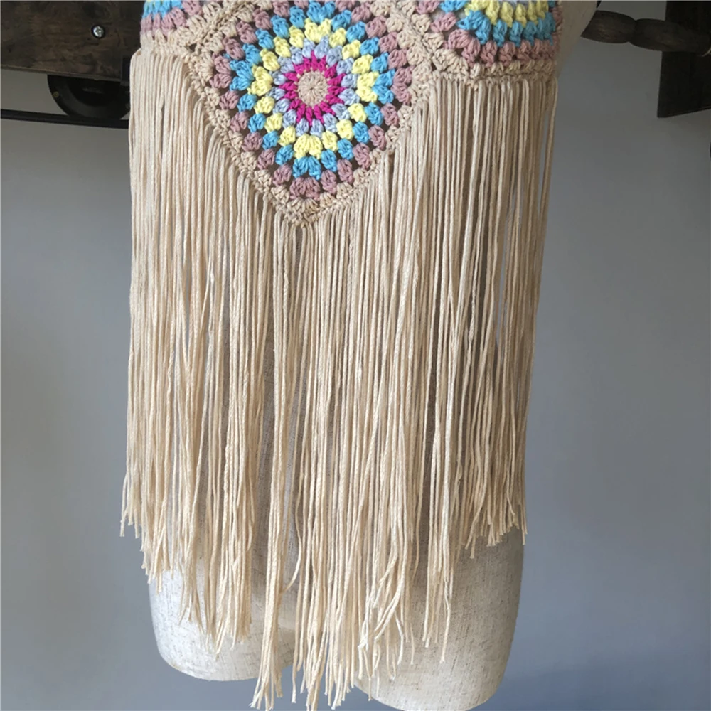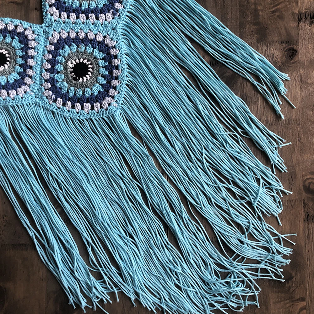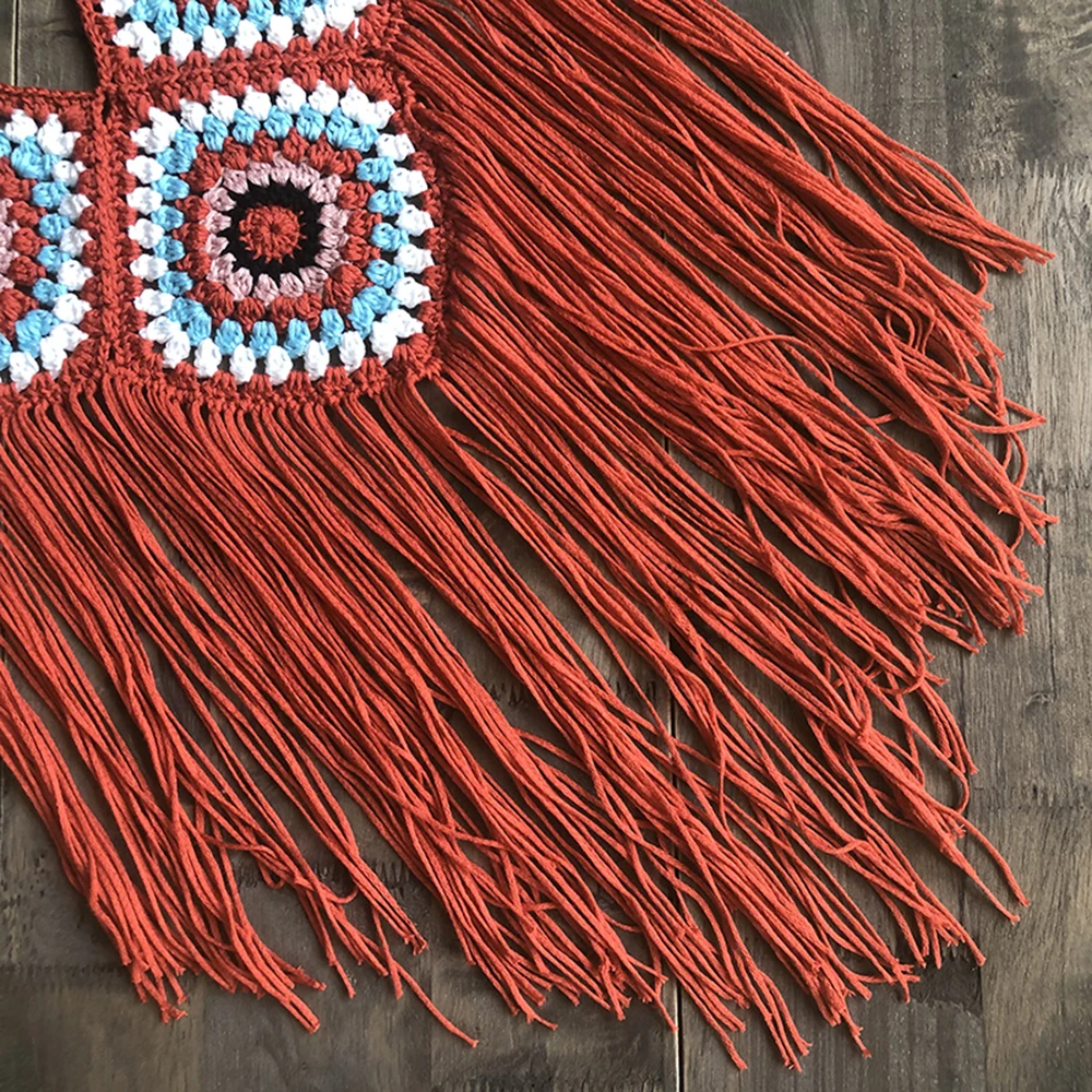 Женский вязаный крючком топ-бикини с кисточками, облегающий купальный топ, богемный купальник, пикантный вязаный крючком бикини ручной работы, хлопковый топ