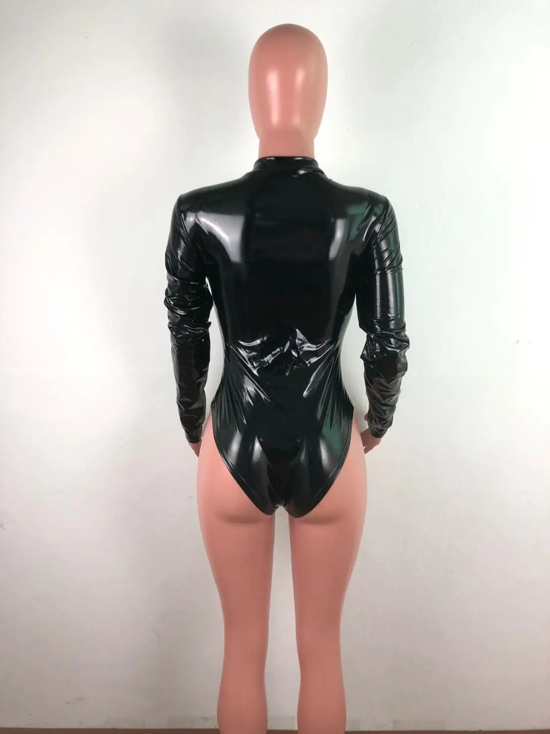 Соблазнительный однотонный Блестящий Комбинезон Adogirl из искусственной кожи на молнии, водолазка с длинным рукавом, обтягивающий комбинезон для ночного клуба, эластичное боди