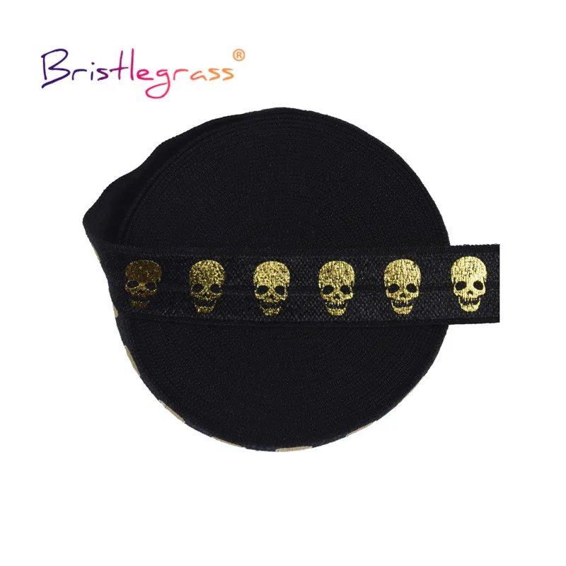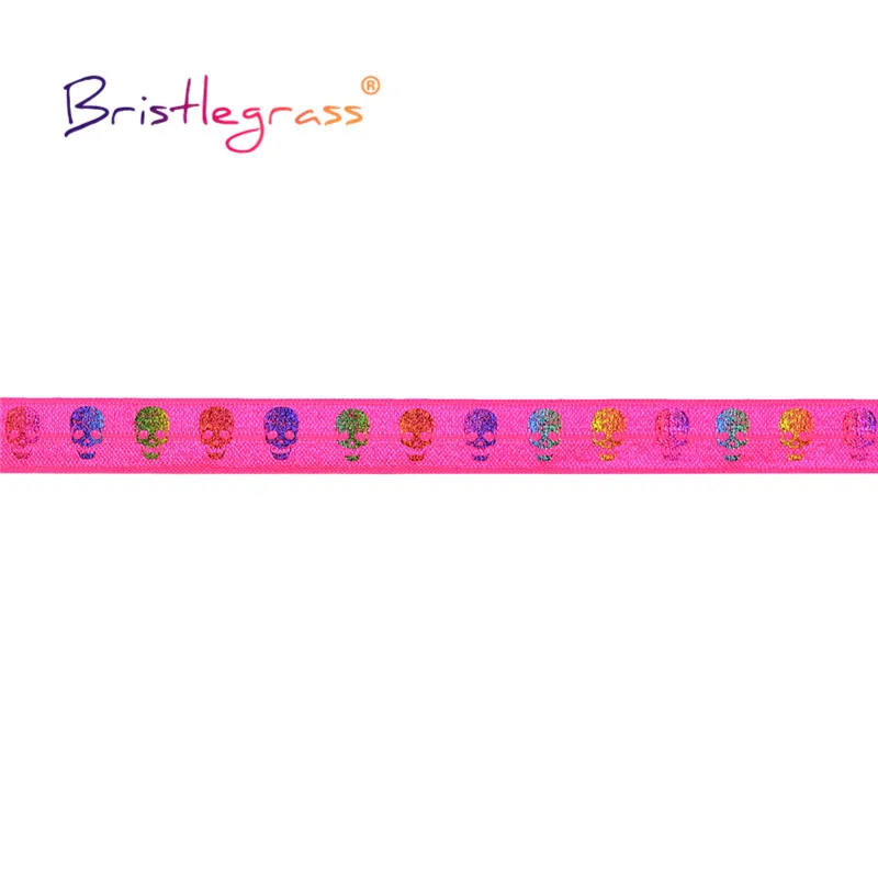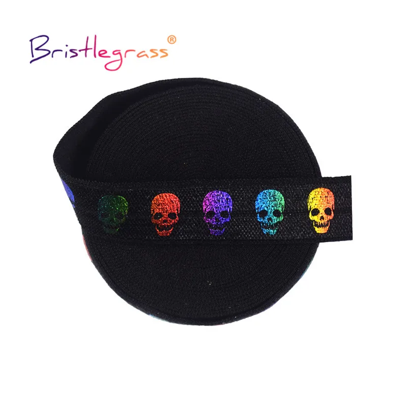 BRISTLEGRASS 50 100 ярдов в рулоне 5/8 "15 мм Радуга Череп фольга печать сложите над эластичным врагом повязка из спандекса лента для волос швейная отделка