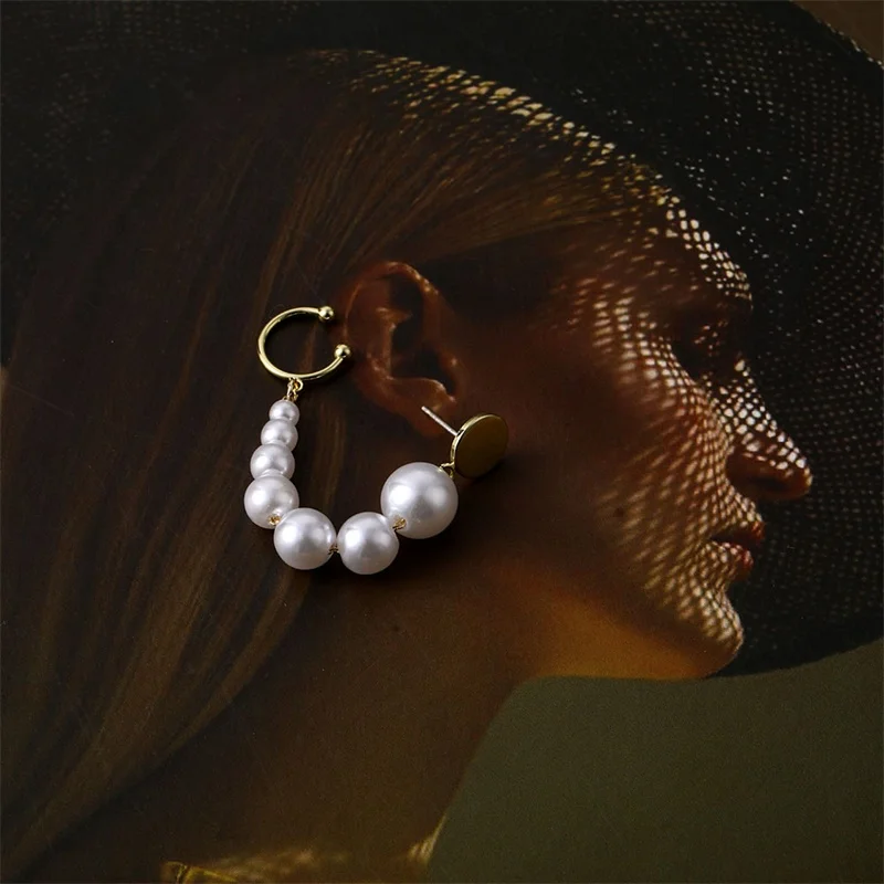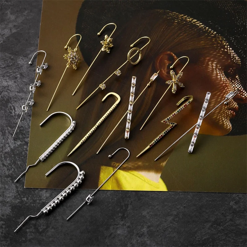Винтажные радужные серьги-гвоздики с кристаллами женские, золотая цепочка с жемчугом, Кафф, ювелирные изделия, 2021