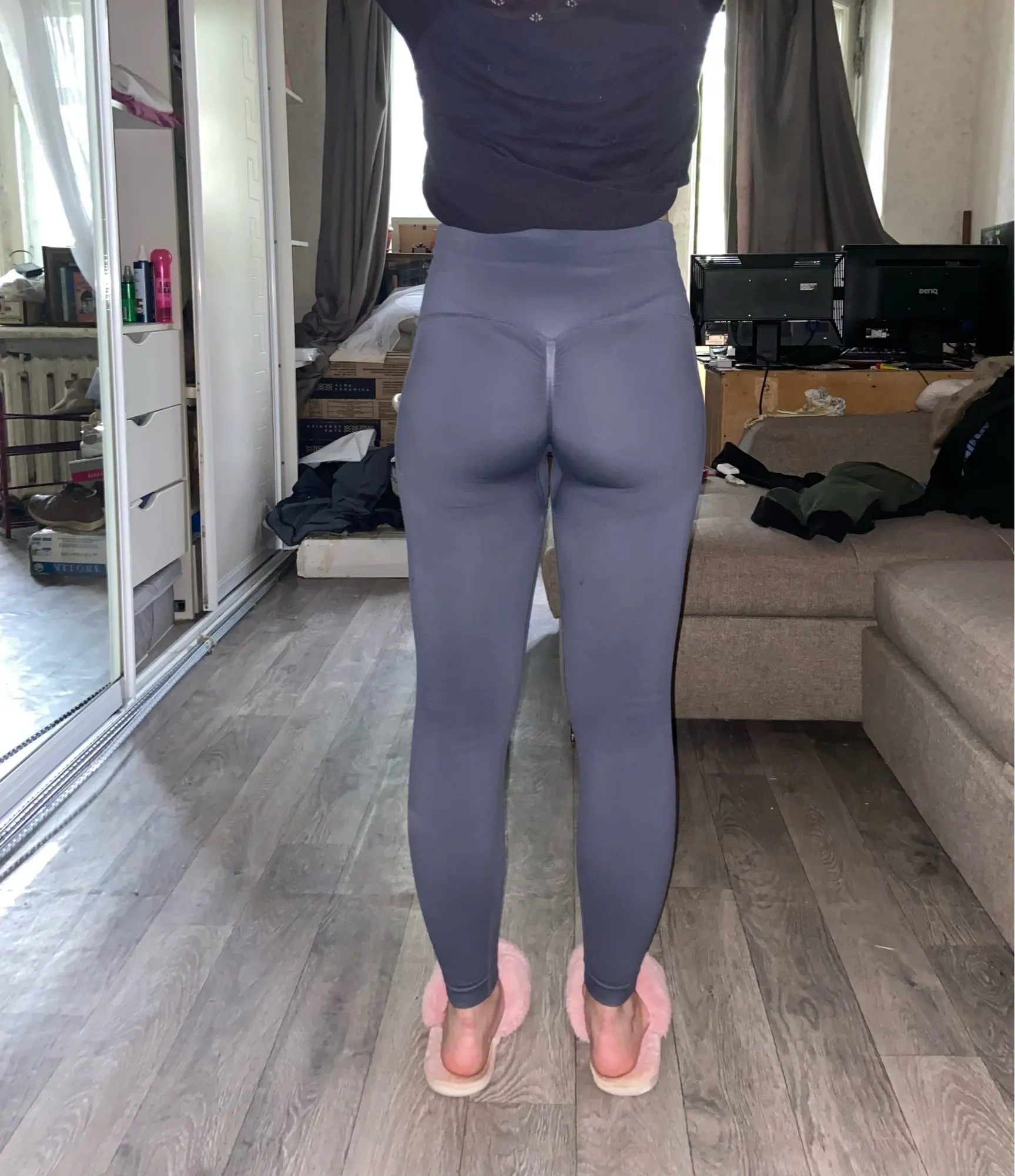 Леггинсы качественные, пришли за 11 дней. Посмотрела отзывы и решила заказать М, но на ОБ 108 оказались маловаты (у меня ноги тоже не маленькие, я забыла это учесть) на ягодицах прям сильно просвечиваются. Но тем не менее налезли, утягивают хорошо. Тут же заказала L, посмотрим)