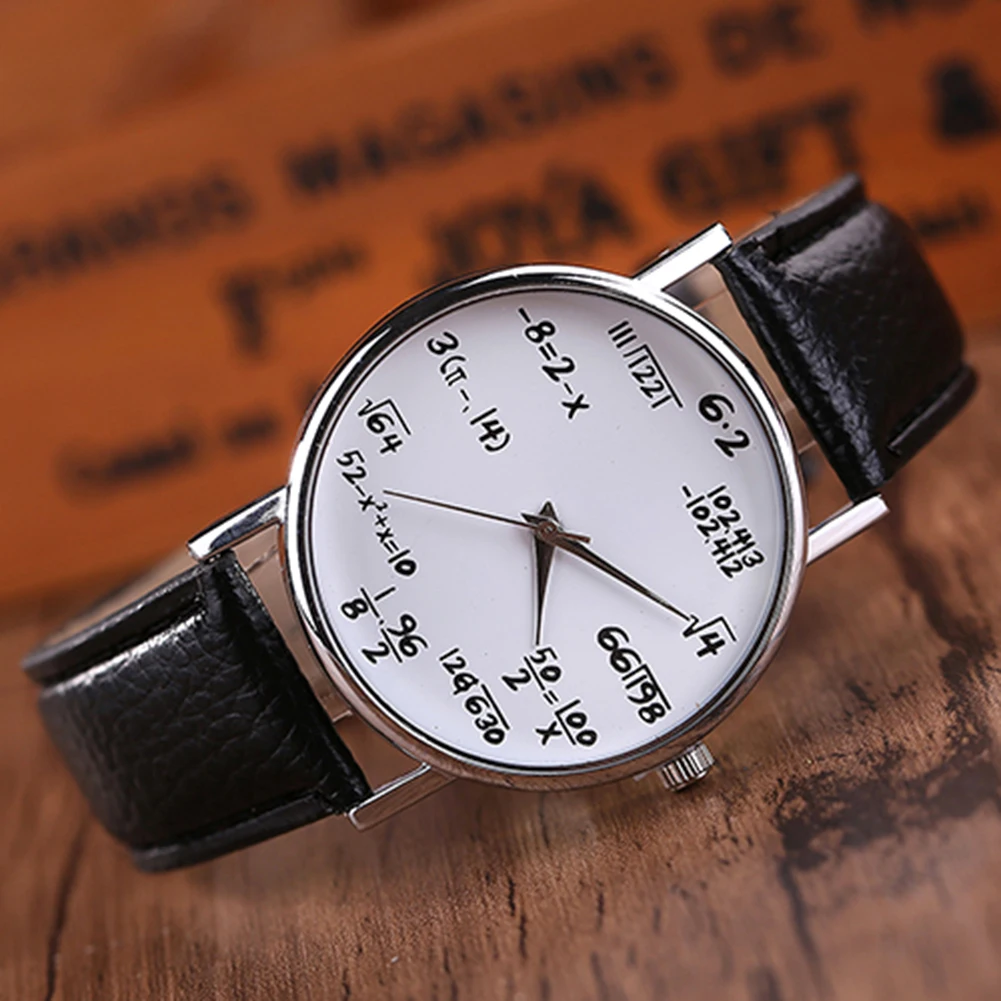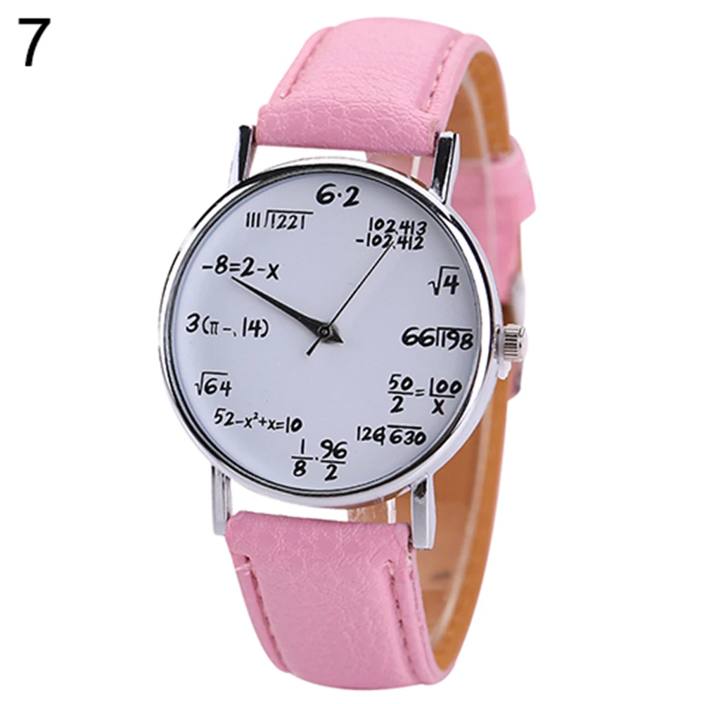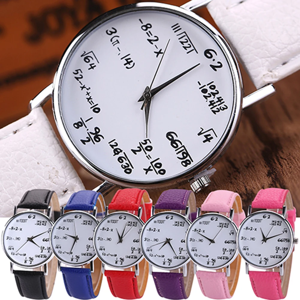 Лидер продаж женские мужские модные кварцевые наручные часы с математическими формулами и циферблатом из искусственной кожи