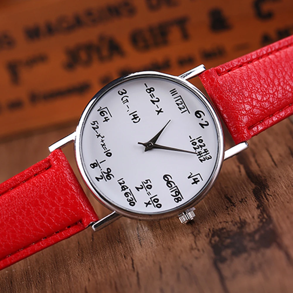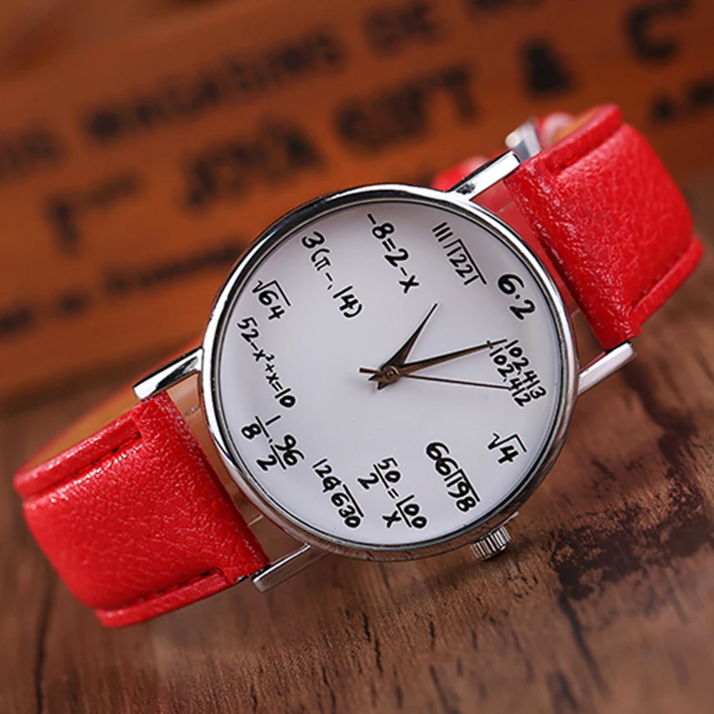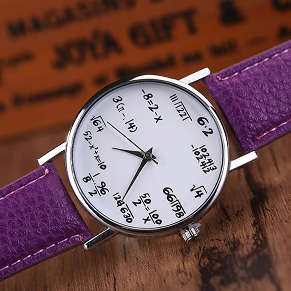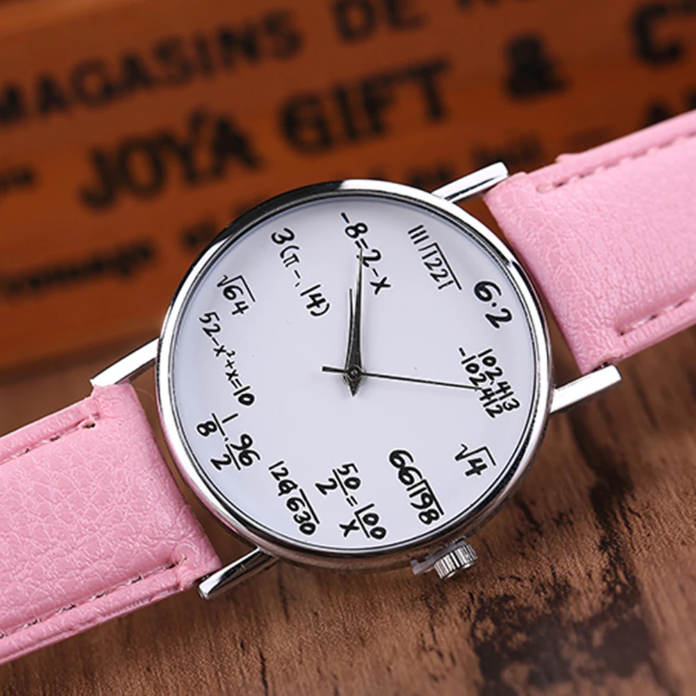 Лидер продаж женские мужские модные кварцевые наручные часы с математическими формулами и циферблатом из искусственной кожи