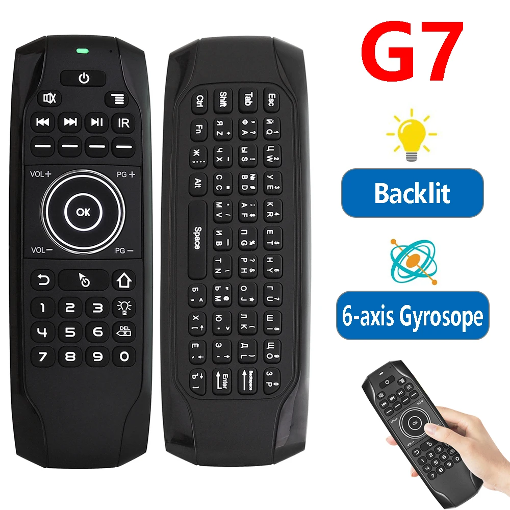 Новый мини-клавиатура Air Мышь G7 Беспроводной дистанционного Управление 77 ключами ИК-обучения 6-осевой гироскоп с подсветкой для Android TV Box H96 Max 3318