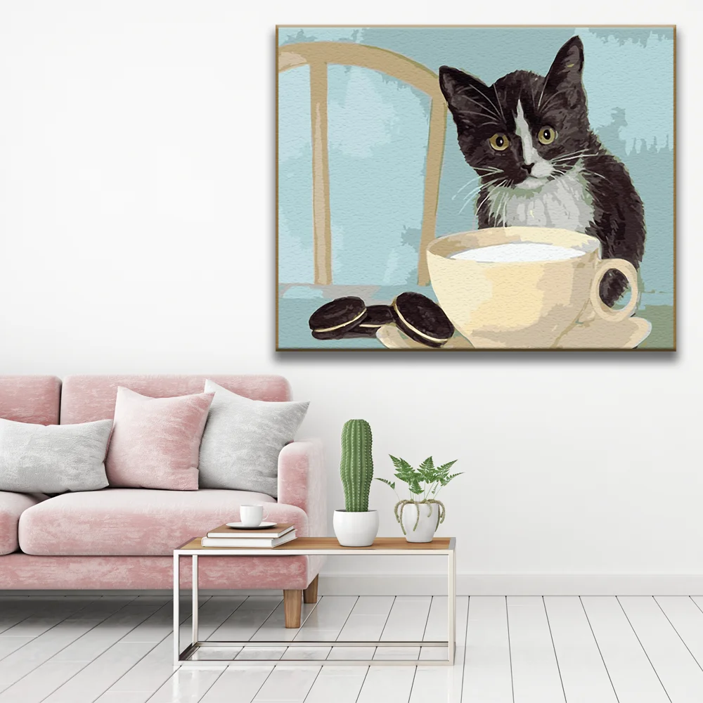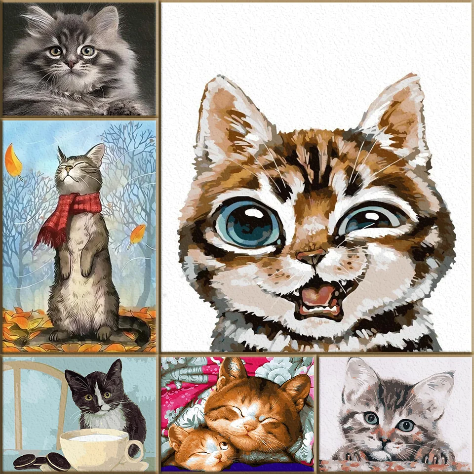 Картина по номерам с изображением милой кошки, животных, картина маслом по номерам, рисунок кошки на холсте, домашний декор, акриловая Настенная картина сделай сам, подарок