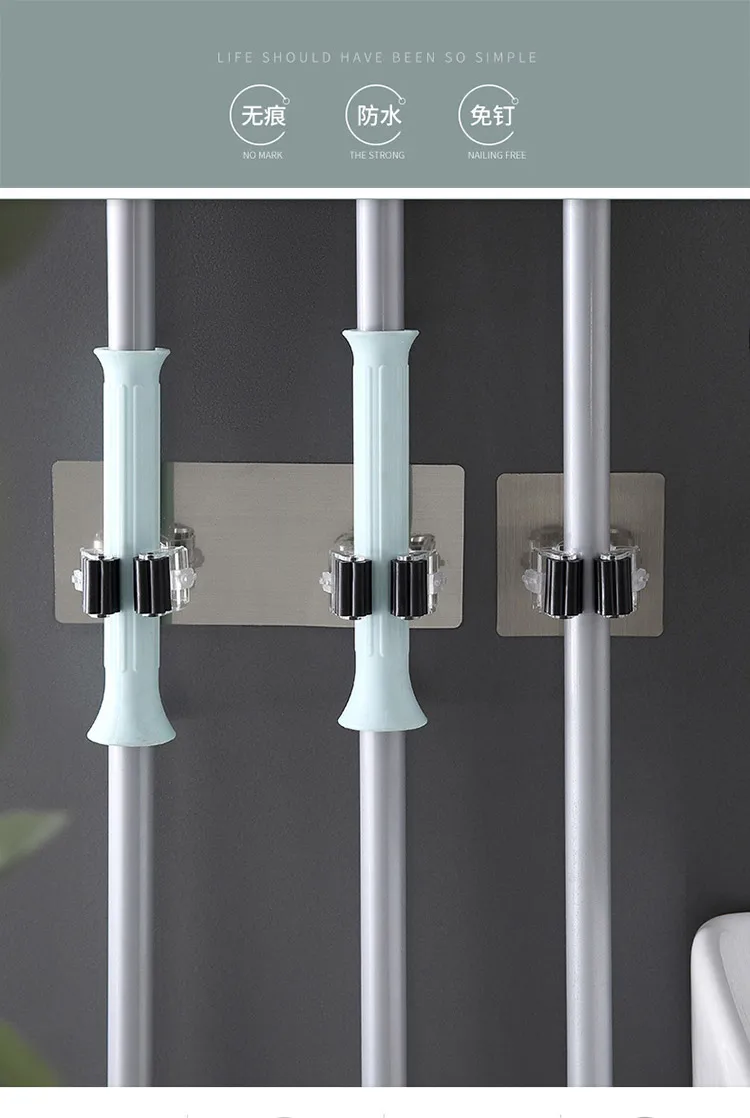 Матовый настенный держатель-органайзер для швабры, вешалка для щетки, метлы, зажим для домашнего хранения, присоска для ванной, подвесная труба, крючки для швабры
