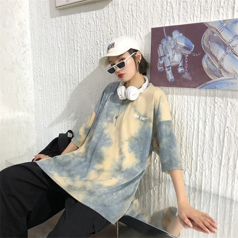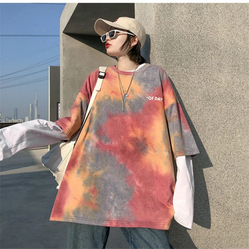 Женская футболка с коротким рукавом, в стиле ретро, с принтом tiedye