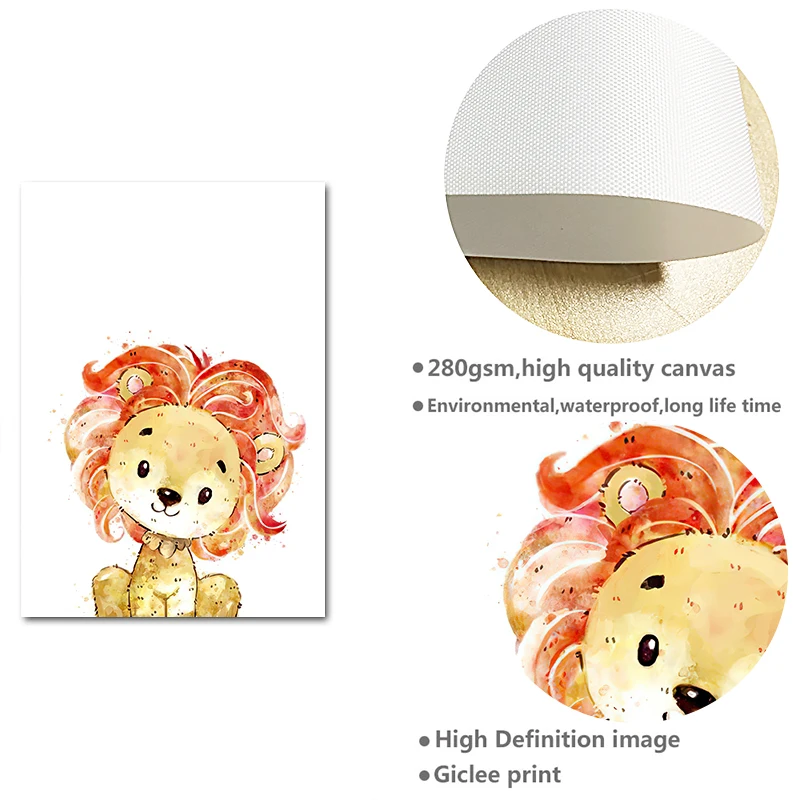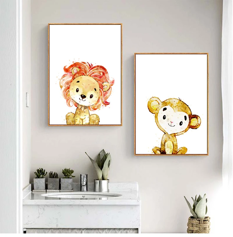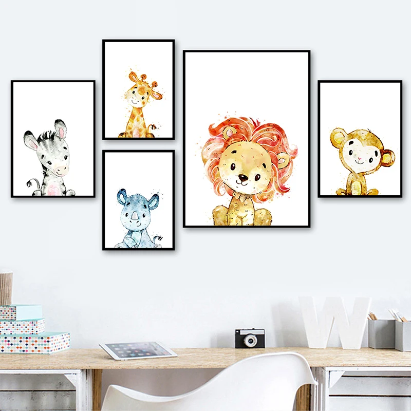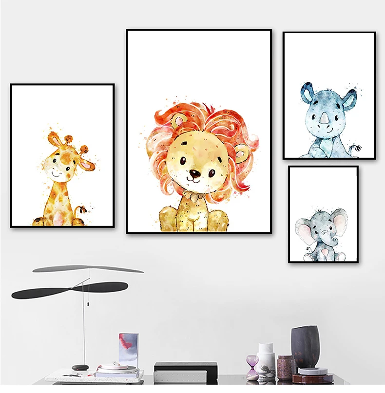 Мультфильм Животные Скандинавская Картина на холсте льва, слона, пл...