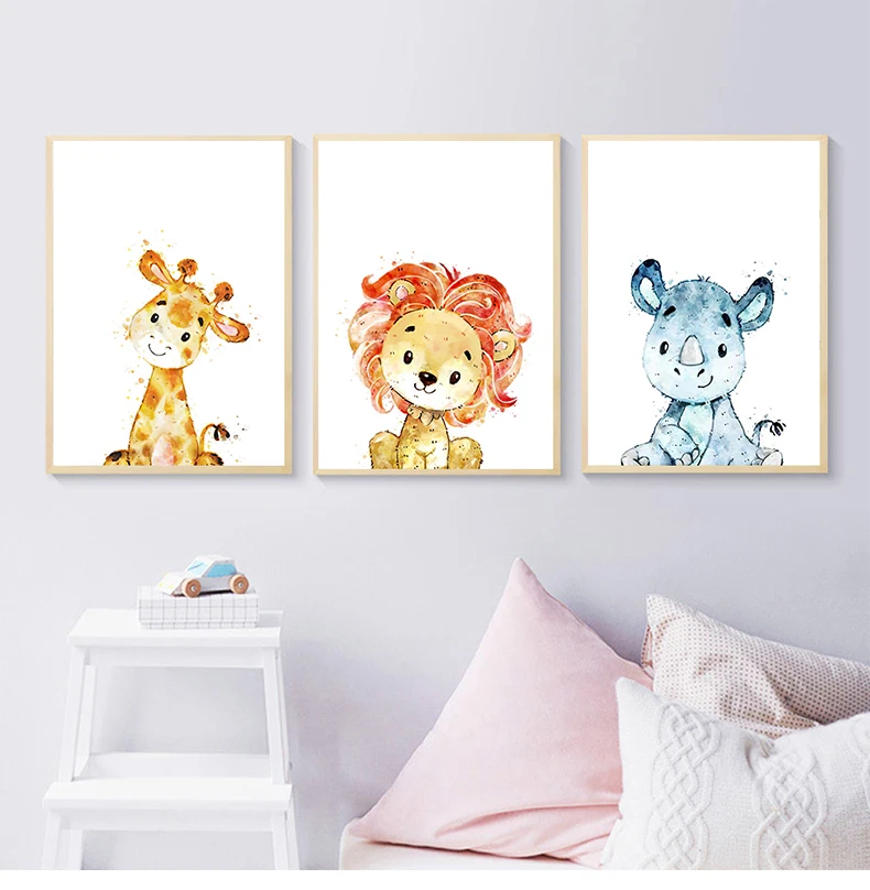 Картина на холсте для детской комнаты, с изображением животных, пин...