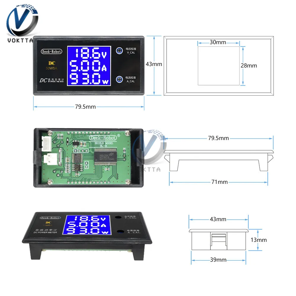DC 0-50V 5A цифровой дисплей Вольтметр Амперметр ваттметр
