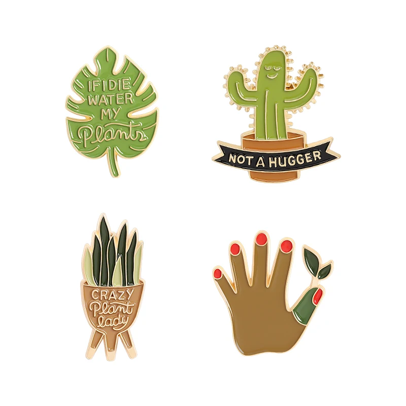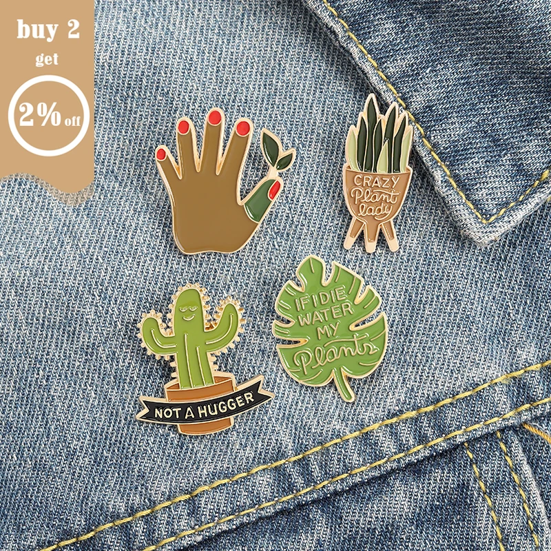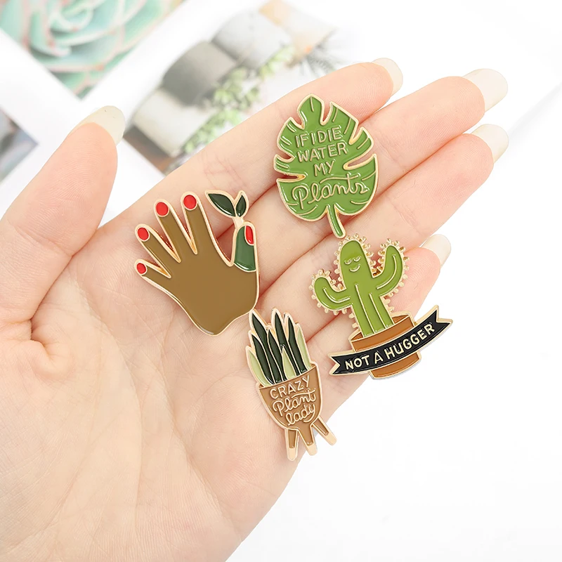 Брошь на лацкан кактус, зеленое растение, эмалированная брошь на ладони, листья, сумочка, мультяшный металлический значок, ювелирное изделие, подарок для женщин и мужчин, оптовая продажа