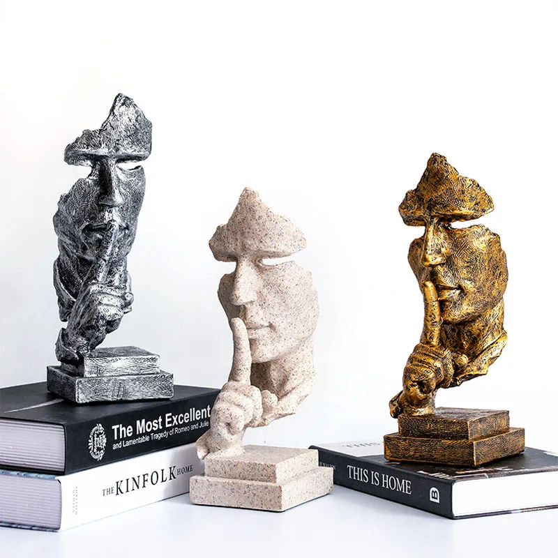 Скульптура из смолы, скандинавские украшения для дома, тишина-это золотая статуя, украшение для офиса, гостиной, рабочего стола, креативная модель товары для рукоделия