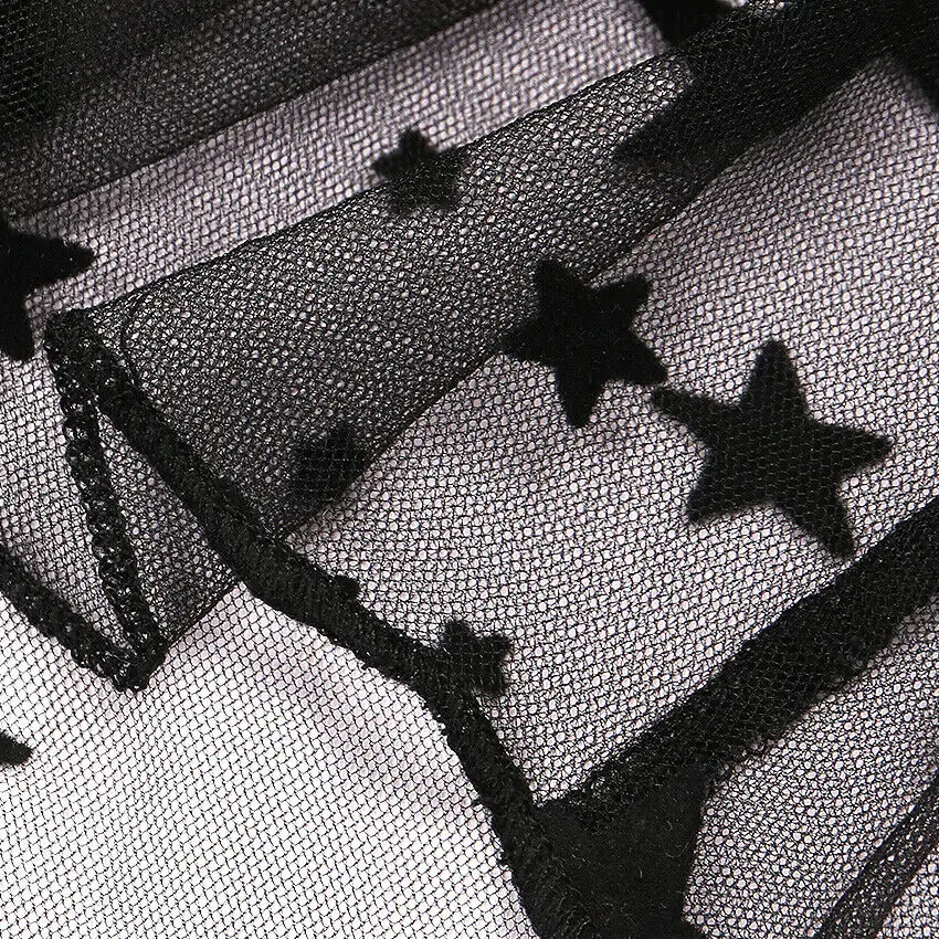 Сексуальная женская прозрачная сетчатая кружевная рубашка со звезда...