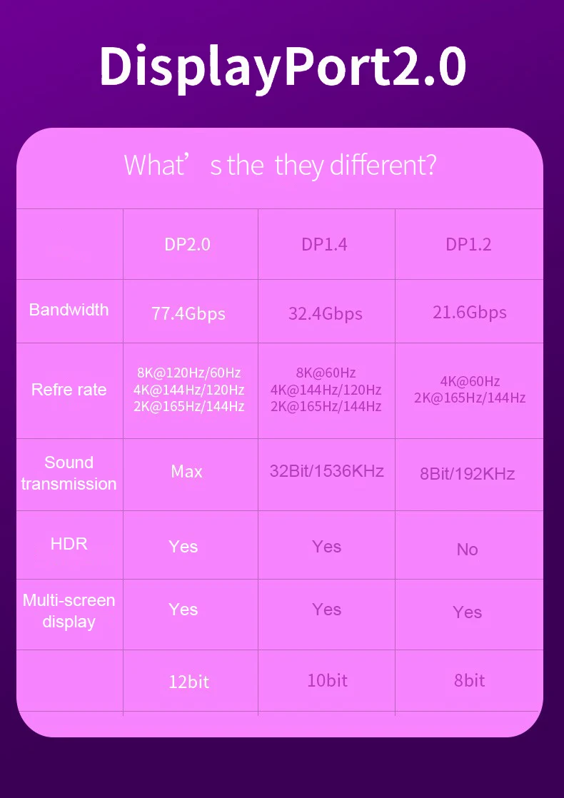 Moshou 8K DisplayPort 2,0 кабель 8K @ 60HZ 4K @ 144HZ120HZ 2K @ 165...