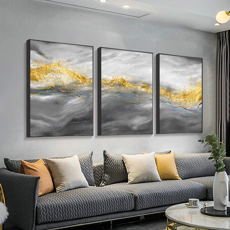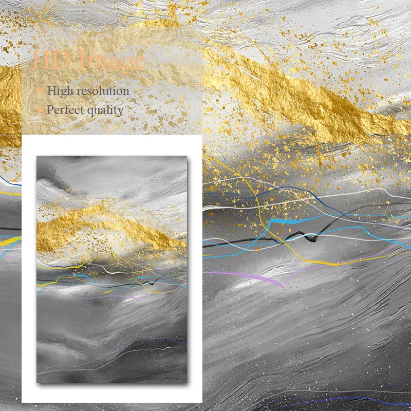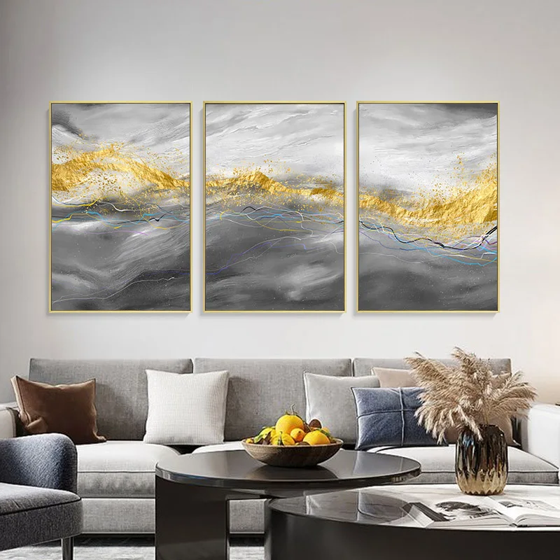 Золотая абстрактная живопись, художественный плакат на холсте, Наст...