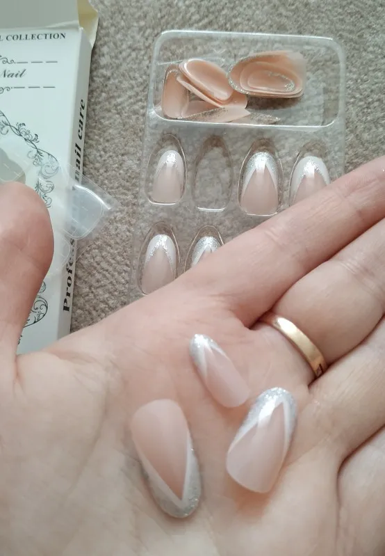 Съемные накладные ногти, 24 шт., французские нежные блестящие накла...