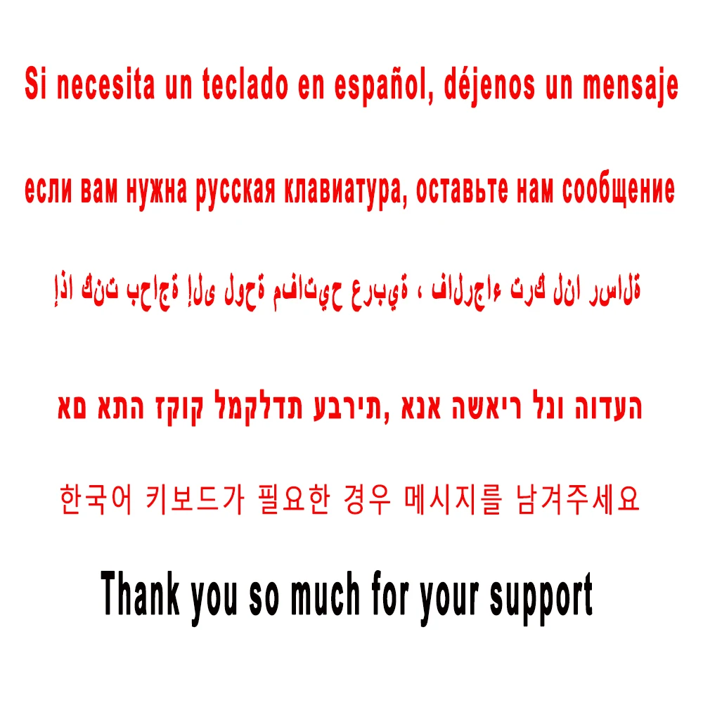 Примечание 3: мы производим английский, русский, испанский, арабский, иврит, корейский, португальский клавиатура, если вам нужна другая клавиатура, такая как немецкий, французский, японский, итальянский, турецкий, пожалуйста, оставьте нам сообщение, мы можем сделать заказ для вас, большое спасибо за вашу поддержку!