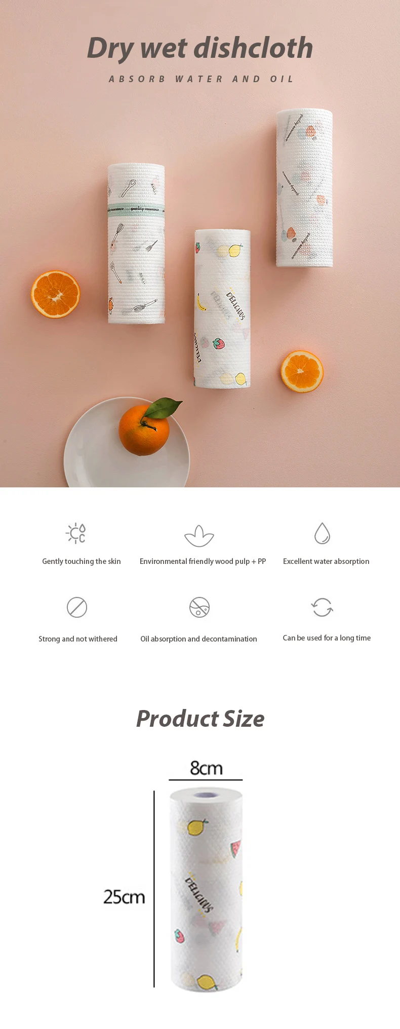QDRR рулон ленивая тряпка одноразовая салфетка для чистки Нетканая ткань для посуды Впитывающее бумажное полотенце кухонное полотенце тряпка для чистки