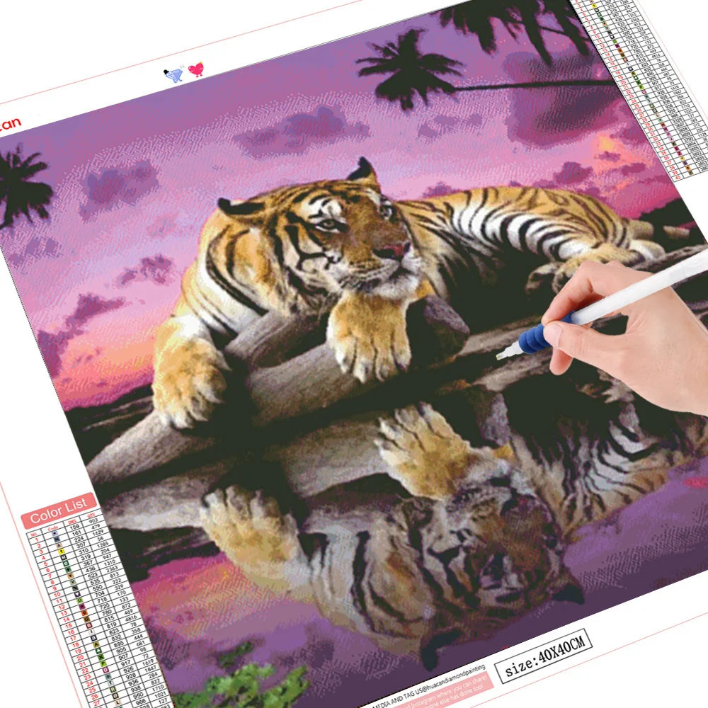 HUACAN алмазная вышивка тигры 5D Алмазная картина ,полноразмерная мозаика для украшения дома, животные со стразами