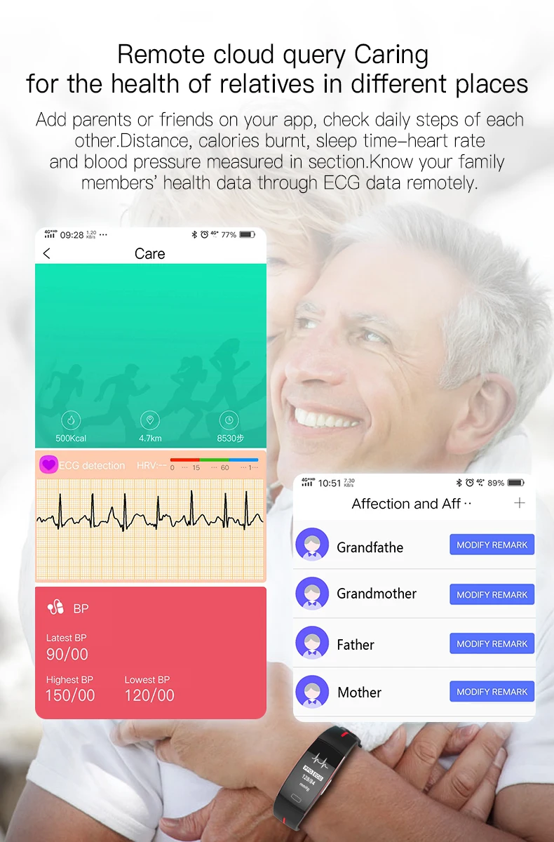 1. Мониторинг Артериального Давления, запись данных истории артериального давления;2. Контроль температуры тела3. Удаленный уход4. Мониторинг сердечного ритма, автоматический мониторинг и запись данных в течение дня5. Мониторинг ЭКГ, отчет ЭКГ6. Напоминание о входящем звонке (Android, Apple), отображение контактного имени;7. SMS, QQ, WeChat напоминание (Android, Apple), отображение содержимого;8. Пропущенные звонки и количество непрочитанных сообщений отображаются (Android/Apple);9. Напоминание о будильнике, напоминание о задаче (Android/Apple)10. Поверните запястье, чтобы осветить экран11. Отслеживание упражнений, мониторинг сна, напоминание о сидячем положении, несколько режимов упражнений