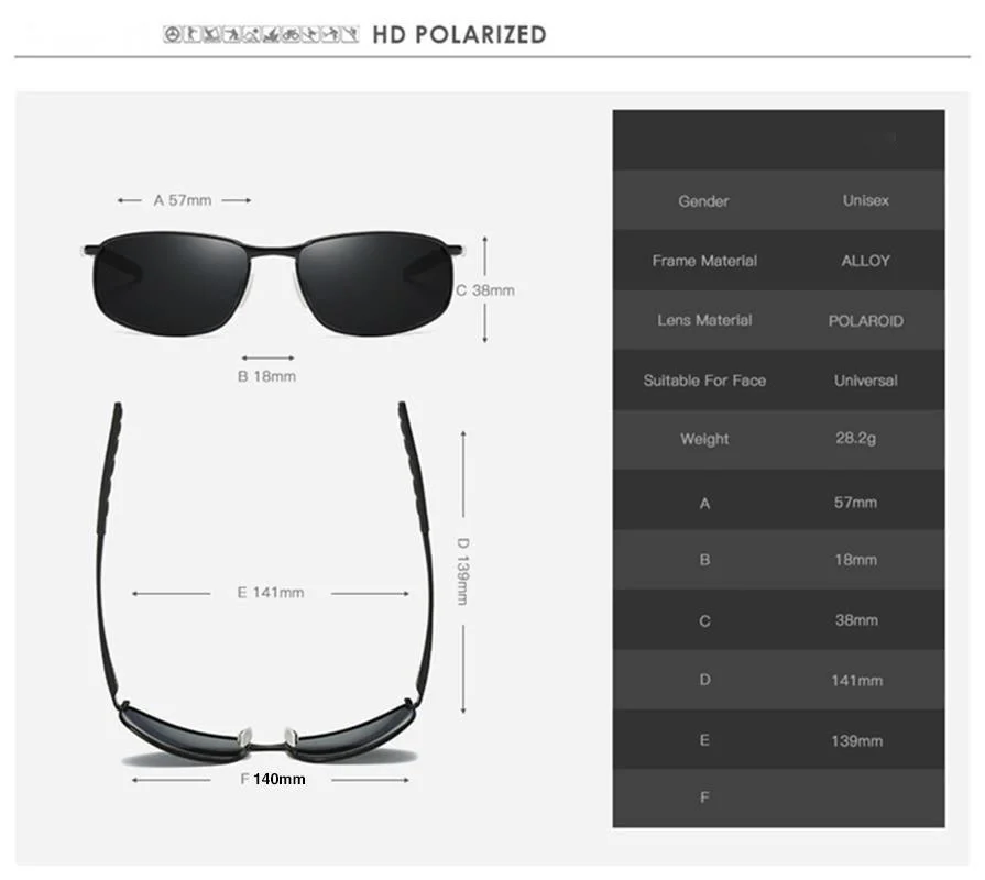 Мужские поляризованные солнцезащитные очки с оправой из сплава UV400 Солнцезащитные очки