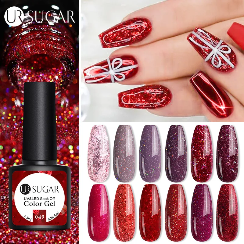 Гель-лак для ногтей UR SUGAR, 7,5 мл, блестящие Блестящие Блестки, лак для нейл-арта Лаки, отмачиваемые УФ-светодиодными сверкающими гелями для ногтей