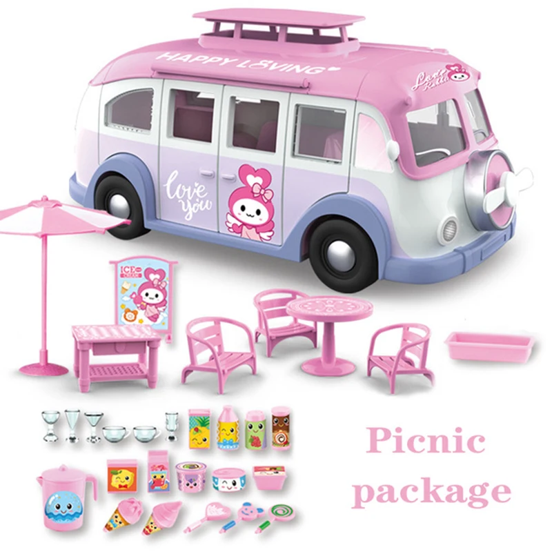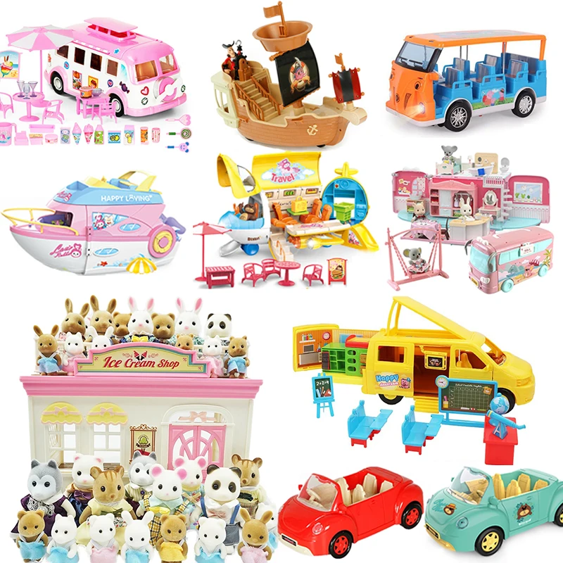 Семейный комплект с лесными животными 1:12, школьный автобус для пикника, автомобиль для экскурсий, круизный лайнер 112, кролик, медведь, панда, девочка, комплект для ролевых игр