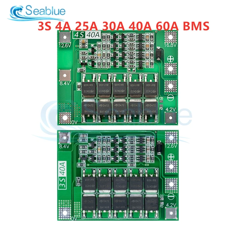 Защитная плата 3S4S 40A60A 18650 BMS, для зарядки литий-ионных батарей, для двигателя перфоратора, 11,1 В12,6 В14,8 В16,8 В с увеличителембалансиром