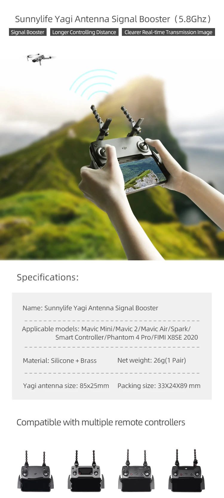 -Усилитель сигнала антенны Sunnylife Yagi для Mavic Mini/ Mavic 2/Mavic Air/Spark/Smart Controller/Phantom 4 Pro/FIMI X8SE 2020