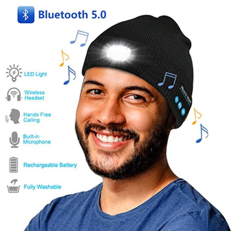 Зимняя шапка, женская вязаная шапка с bluetooth и светодиодной подсветкой, уличная спортивная шапка, Мужская теплая шапка для скалолазания и кемпинга