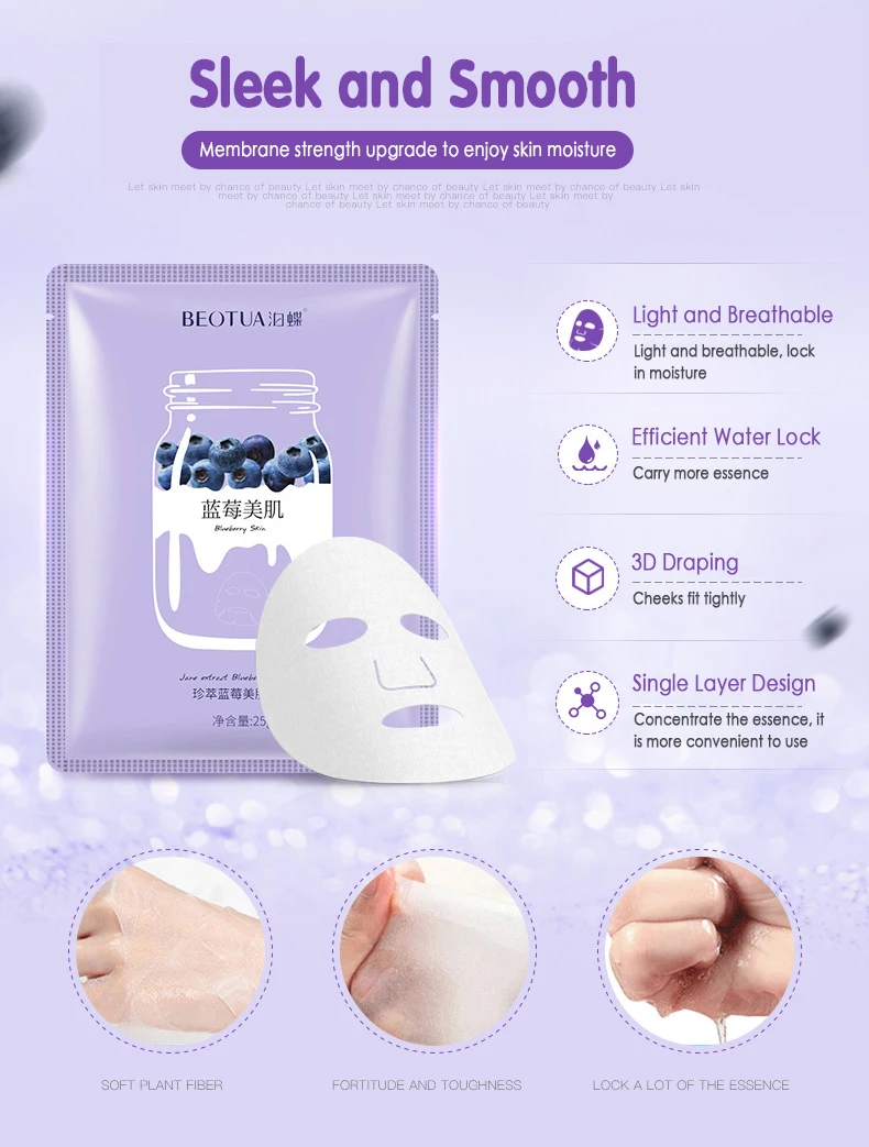 Маска для красоты черники содержит экстракт плодов черники, который увлажняет и увлажняет кожу.