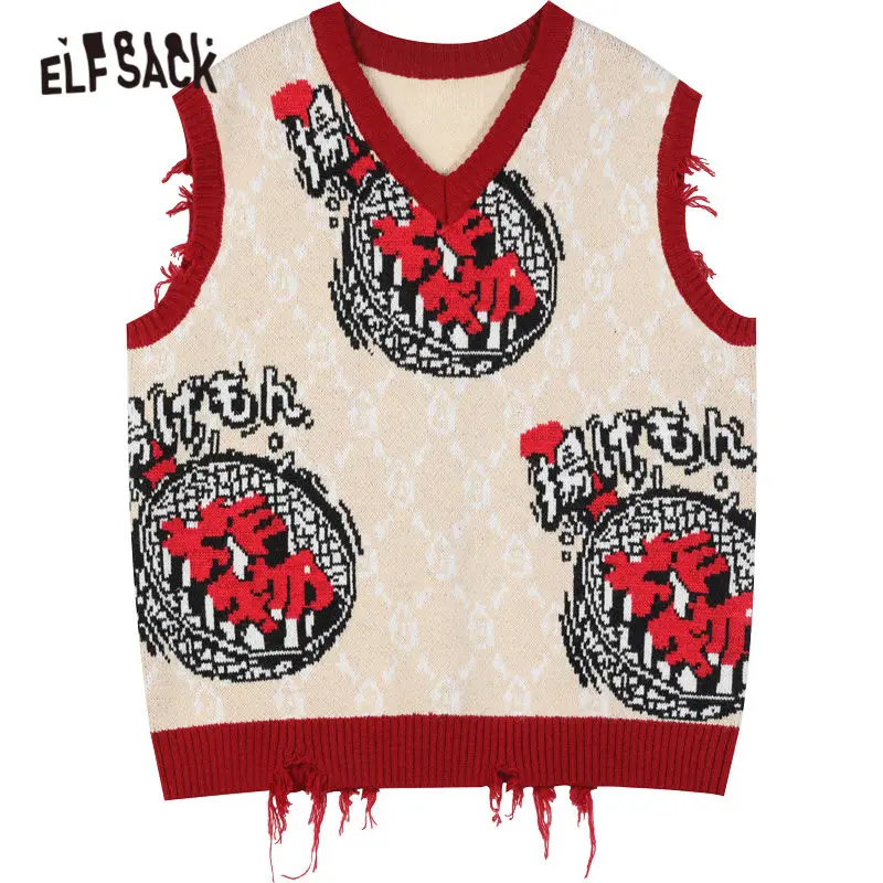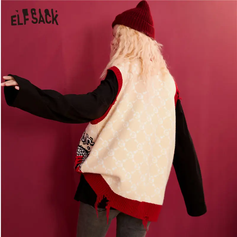 Женский Повседневный трикотажный пуловер ELFSACK Harajuku, винтажный Повседневный пуловер без рукавов в Корейском стиле, зима 2020