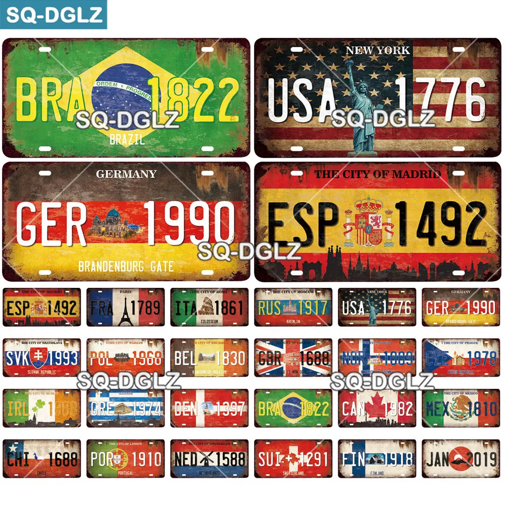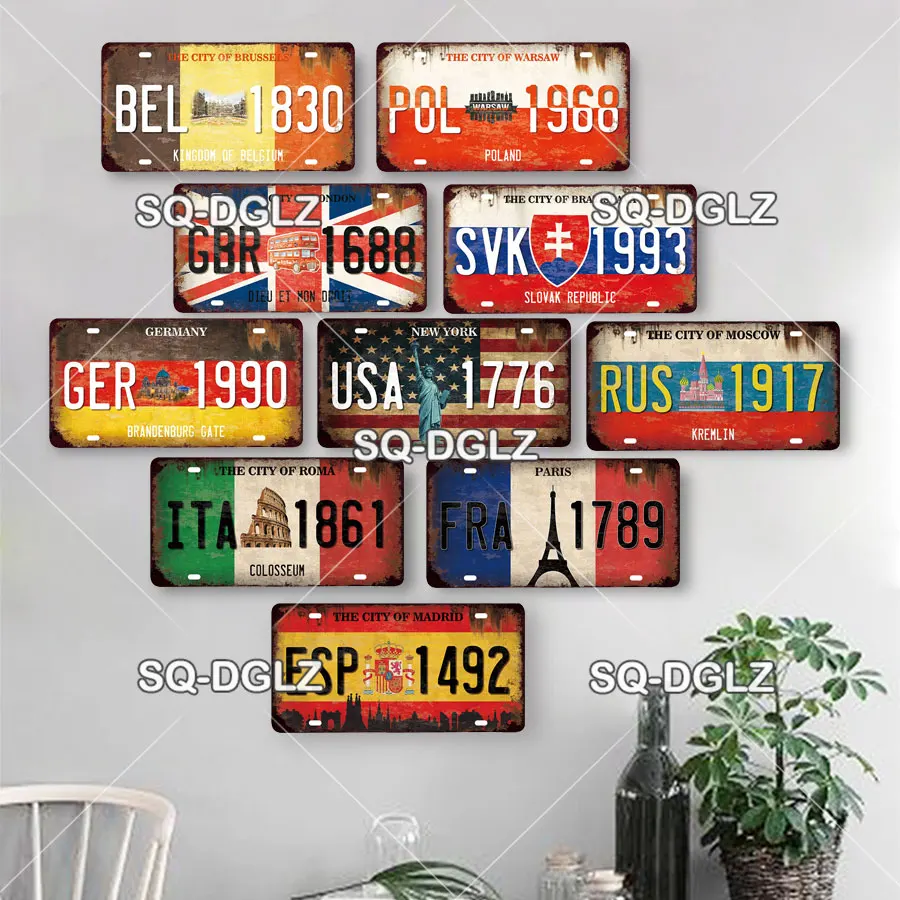 SQ-DGLZ металлический номерной знак города, винтажная табличка флаг страны, жестяной декор для стен, декор для бара, Постер для путешествий