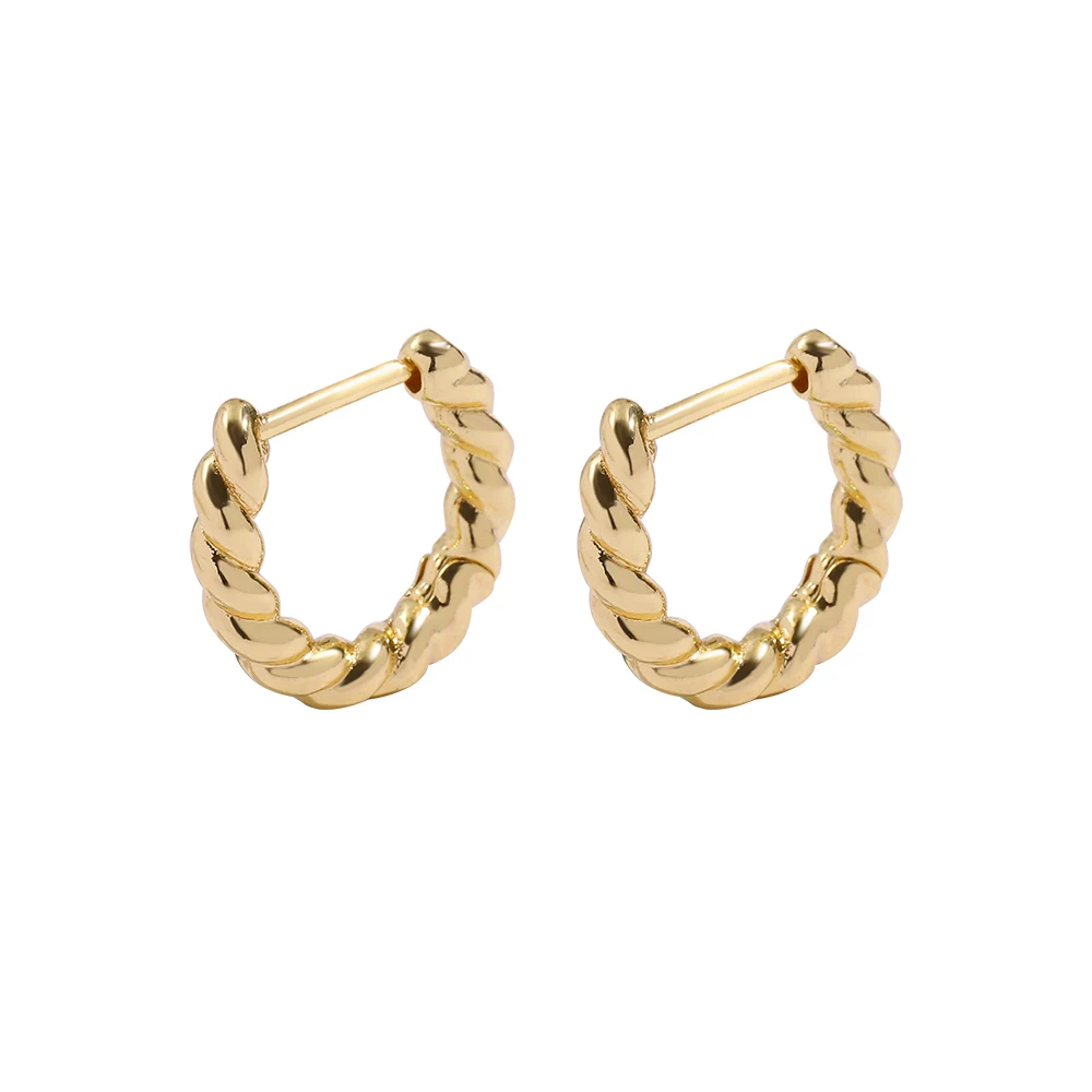 Модный минималистичный маленький золотого цвета серьги-кольца для женщин очарование Huggie витой крошечные обручи простой, ювелирное изделие, подарок