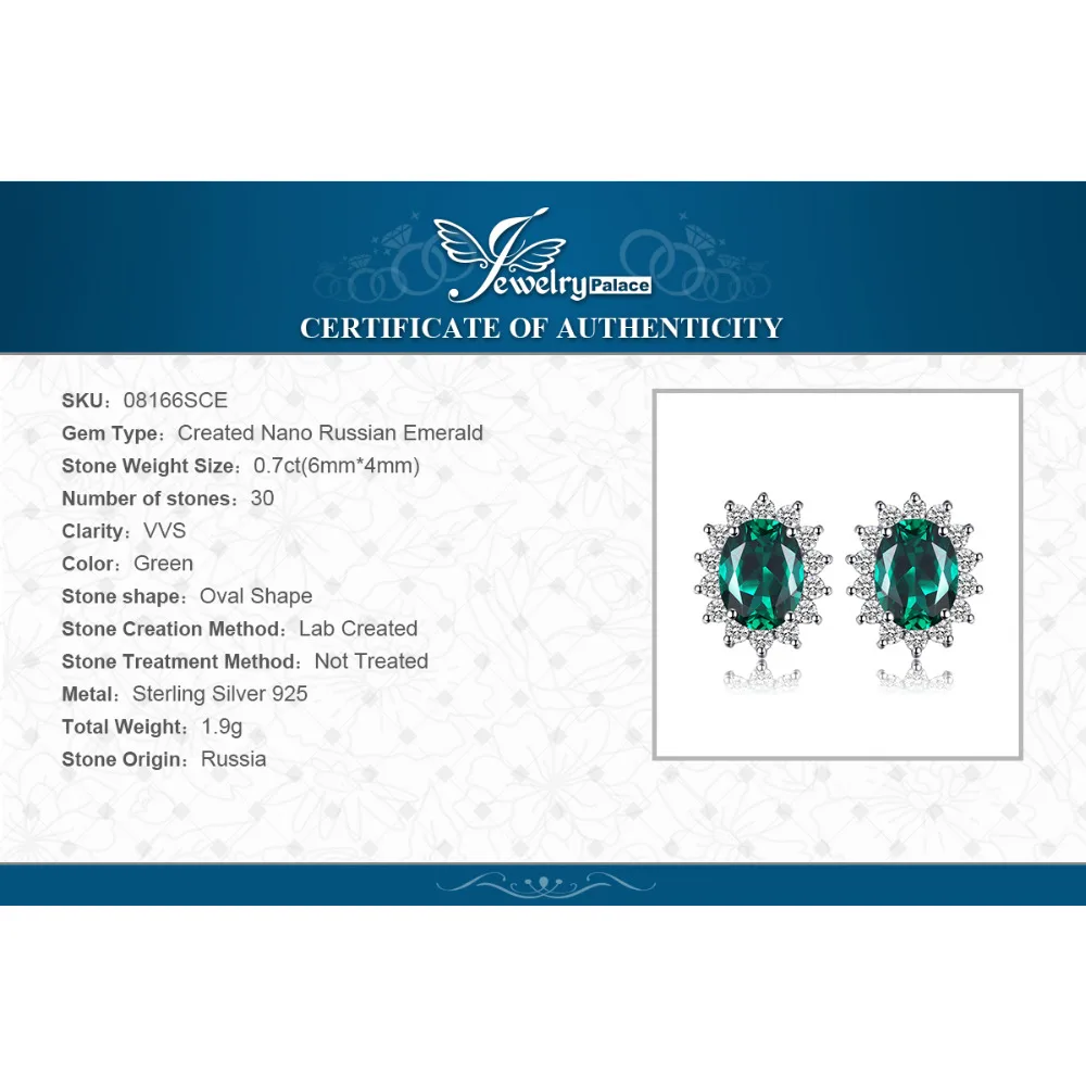 Женские серьги-гвоздики из серебра 925 пробы с искусственным зеленым изумрудом