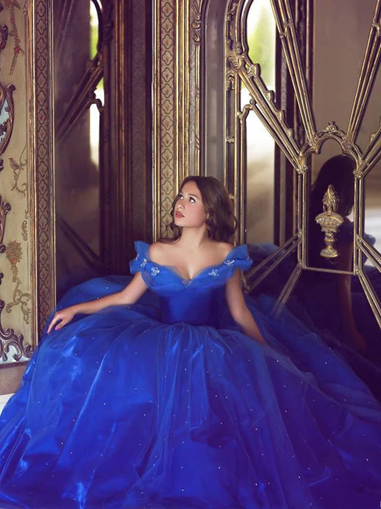 2021 удивительное ярко-синяя органза бальное платье Золушки Quinceanera платья с бисером длина до пола сладкие 16 лет нарядные платья