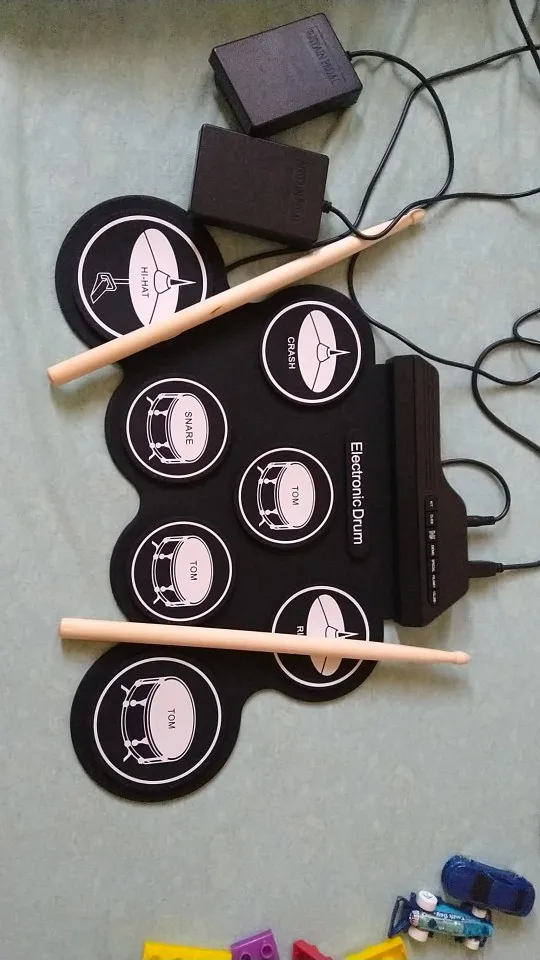 Портативный электронный барабан, цифровой USB 7 накладок, набор силиконовых электрических барабанных накладок с барабанными палочками, ножная педаль