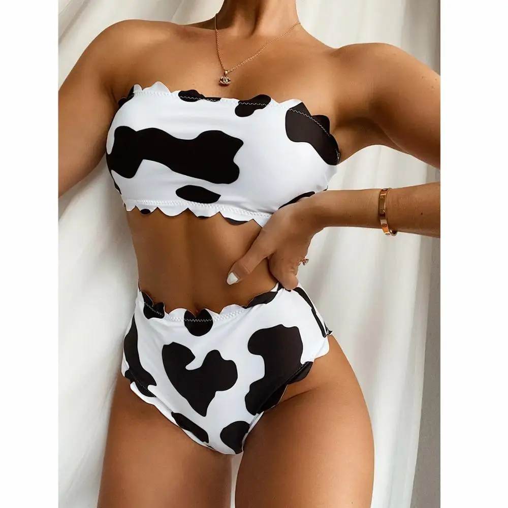 Бикини бандо с высокой талией, 2021, сексуальный женский купальник, купальник, женский купальник с принтом, стринги, бразильский комплект бикини, купальный костюм