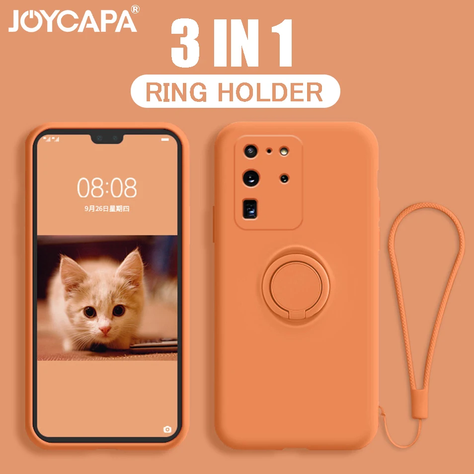 Жидкий силиконовый чехол с кольцом-держателем для Huawei P20 P30 P4...