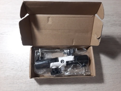 Заказал 18.03 получил 14.04. упаковано в картонную коробку, полиэтиленовый пакет и почтовый конверт. При перевозке немного повредилось покрытие. Неприятно. Сделано из алюминиевого сплава (белая и чёрная части), качество обработки деталей хорошее. Товар и продавца рекомендую.