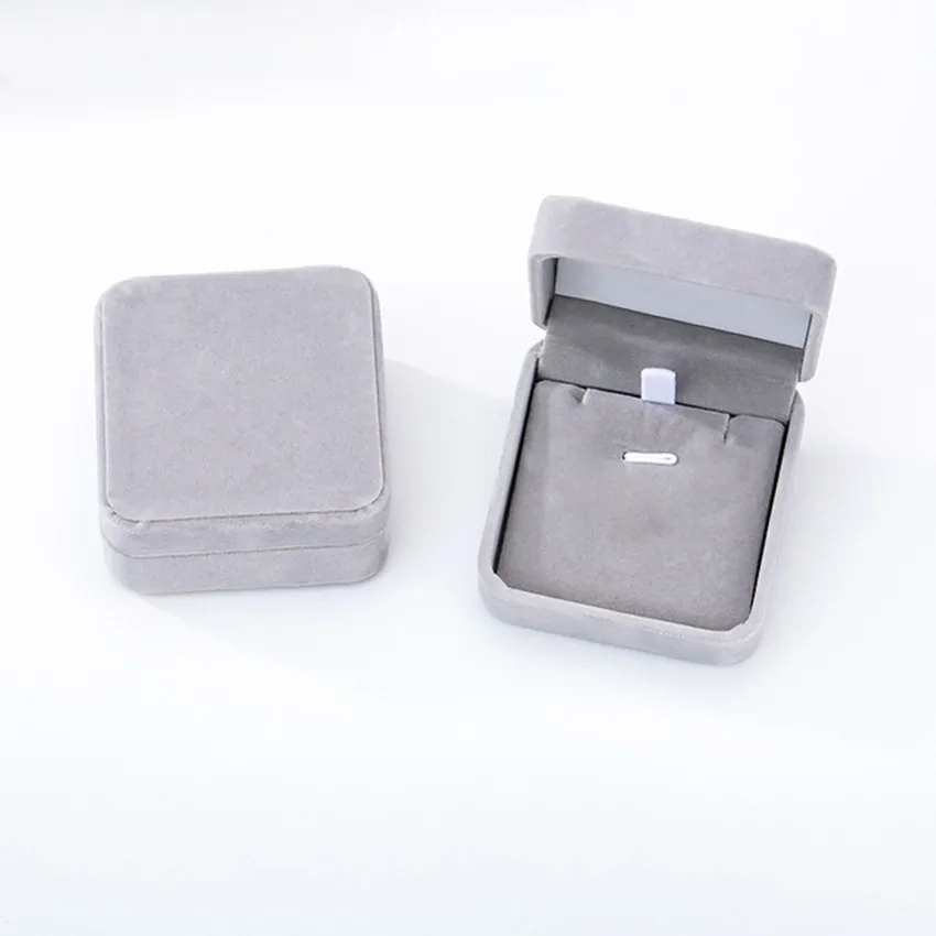 Оптовая продажа, коробка для хранения свадебных колец, подвеска, ожерелье, Подарочная коробка для ювелирных изделий, серый бархатный ящик для хранения, демонстрация, переносная коробка