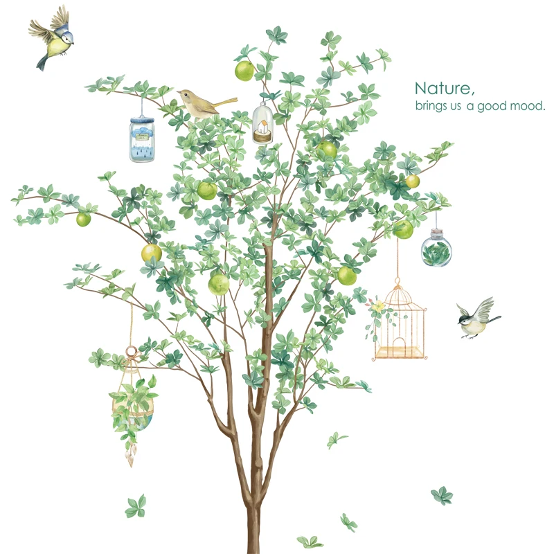 Зеленое дерево наклейка на стену виниловая наклейки для стены в гостиной наклейка s домашний Декор постер Весенние птицы Наклейка на стену Съемная Наклейка на стену