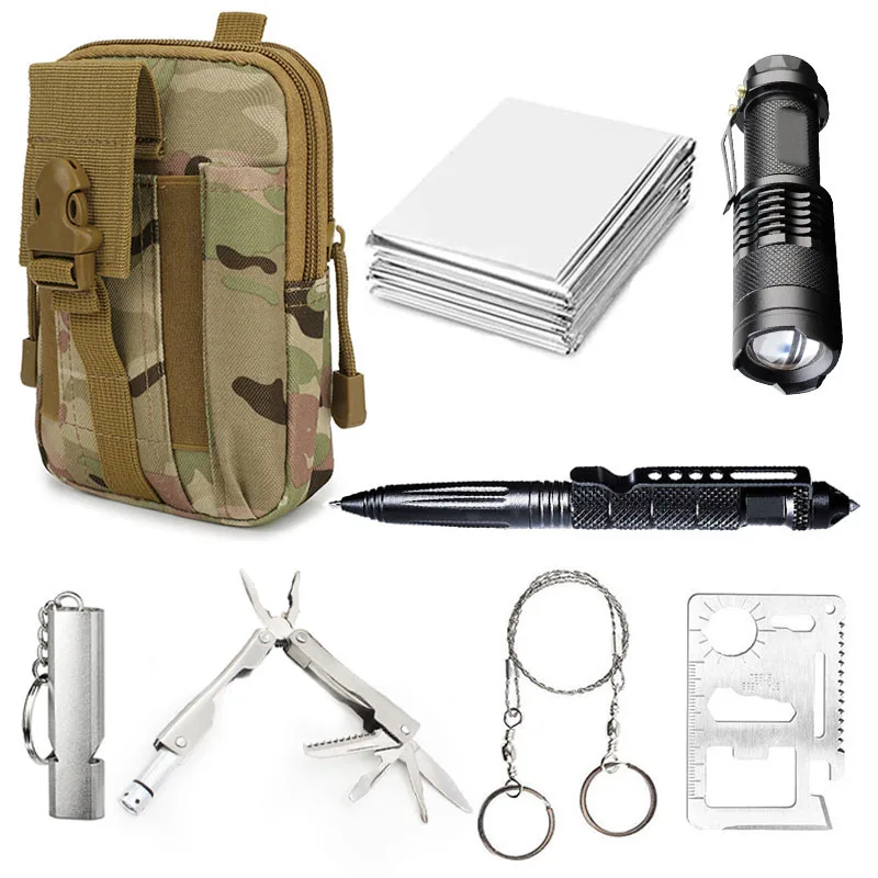 Тактический Набор для самообороны, спасательные принадлежности, наборы для выживания, тактическая ручка, фонарик, свисток, пила для кемпинга, чрезвычайных ситуаций