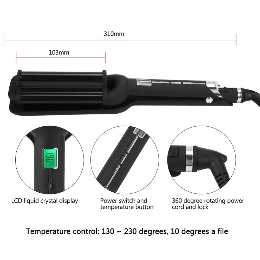Трехтрубные щипцы для завивки волос 32 мм большая палочка для завивки волос керамическая Тройная бочка бигуди для большой волны Гофрирование для волос