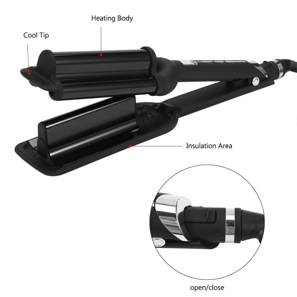 Щипцы для завивки волос с тремя трубками, плойка 32 мм, Большая керамическая плойка с тремя валиками для гофре