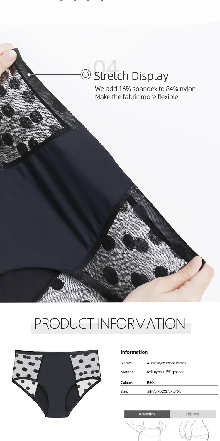 Нижнее белье менструальные трусики 4 слоя герметичные сексуальные сетчатые женские брюки недержание впитывающие DULASI Droposhipping