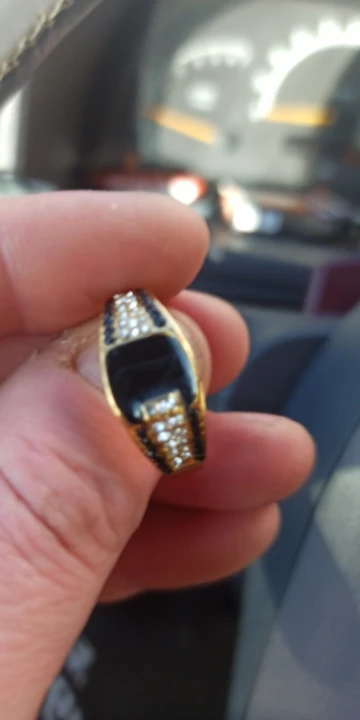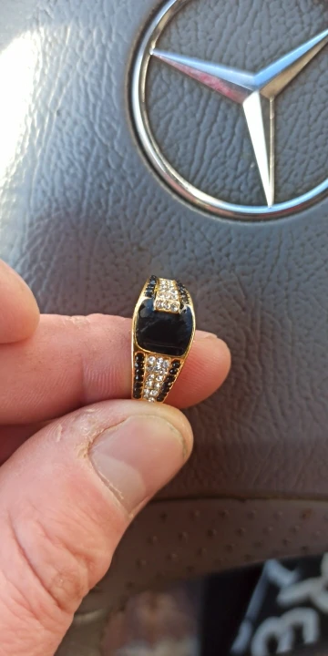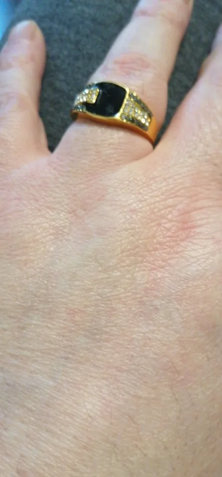 Импульсивная покупка, так как я не ношу золотые украшения. Все, что у меня есть, серебристого или стального цвета. Долго ждать, и с радостью удивился. Он может быть золотого цвета, но выглядит отлично, с черным камнем и стразами. Отлично подходит для любого цвета ваших украшений. Все еще будет из стали, но это будет работать.