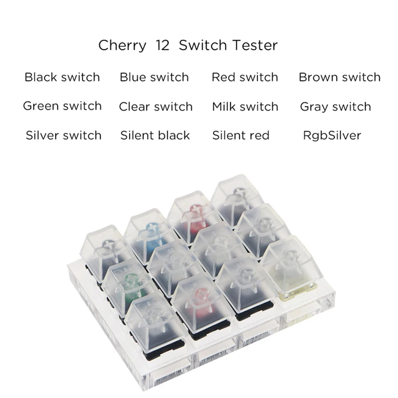 Описание товараМатериал: акриловые колпачки, пластикКомплект тестера содержит 12 Прозрачные шапочки и 12 переключателейРазмер (Д * Ш * В): 8,5x6,5 см x 3 смОсобенности:● Необходимый комплект для использования механического переключателя Cherry MX.● Устанавливается на печатную плату для имитации реального ощущения ключа.● Прозрачные колпачки клавиш.● Когда вы добавляете переключатели и колпачки клавиш, тестер переключателей обеспечивает более точную среду тестирования и более точные ощущения.Необходимый набор для механического переключателя Cherry MX.Посылка входит:1 комплект x тестер